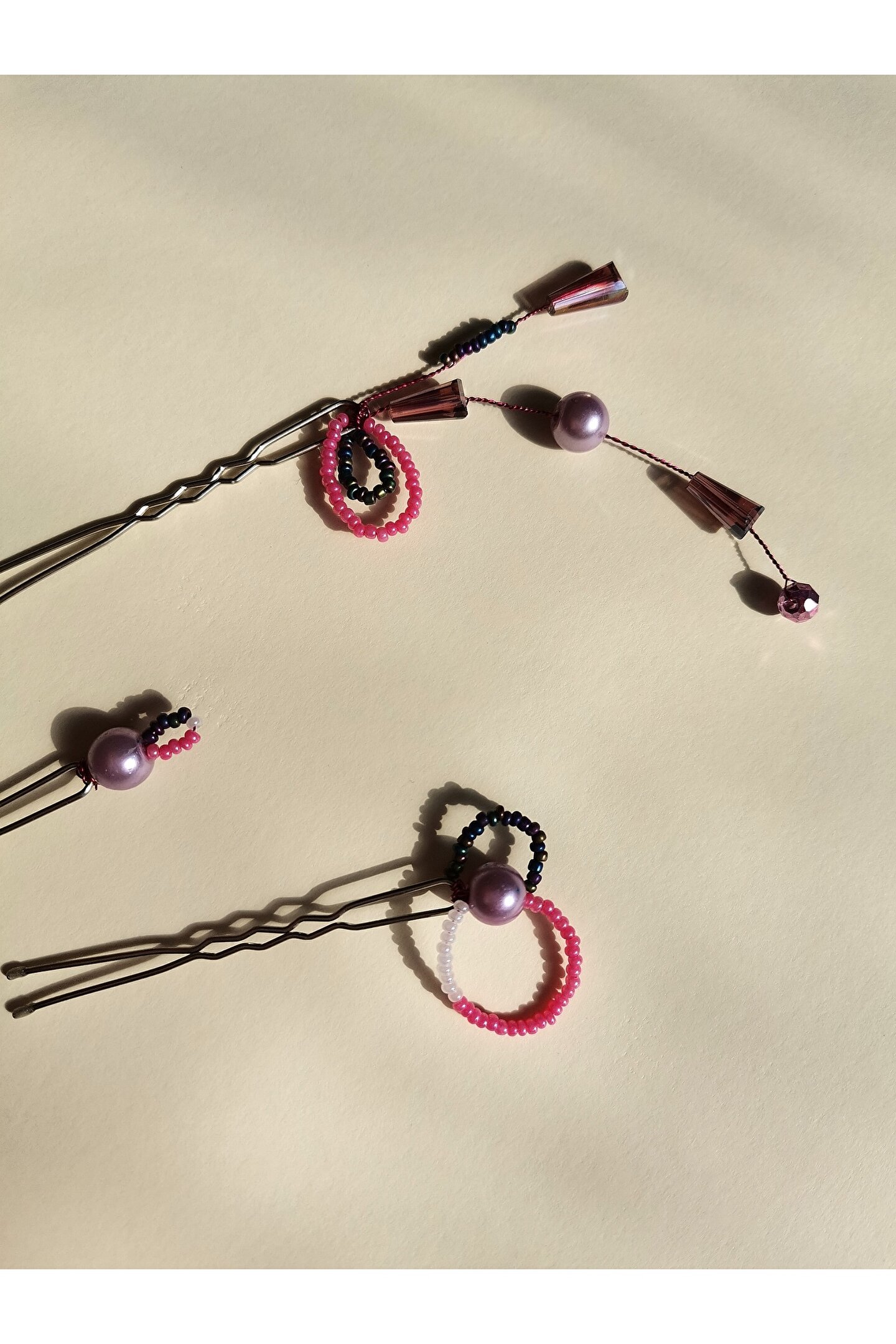 • Kum boncuk ve kristal boncuklar ile hazırlanmış özel tasarım firkete toka.