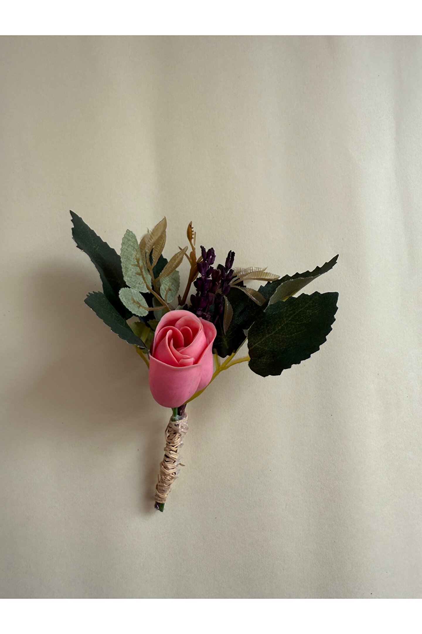 İthal kuru çiçekler ve yapay çiçekler ile hazırlanan özel tasarım damat yaka çiçeği