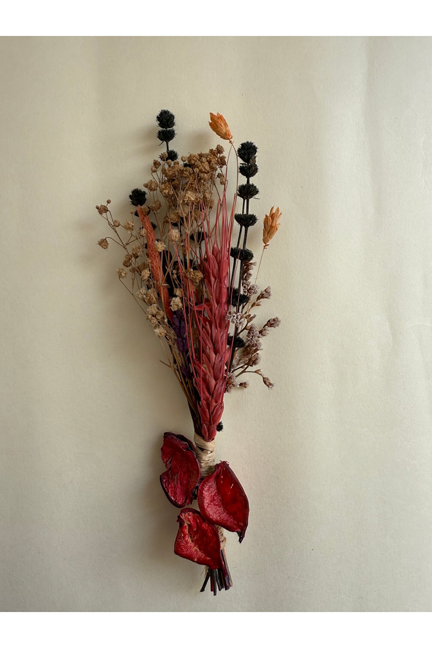 İthal kuru çiçekler ve yapay çiçekler ile hazırlanan özel tasarım damat yaka çiçeği
