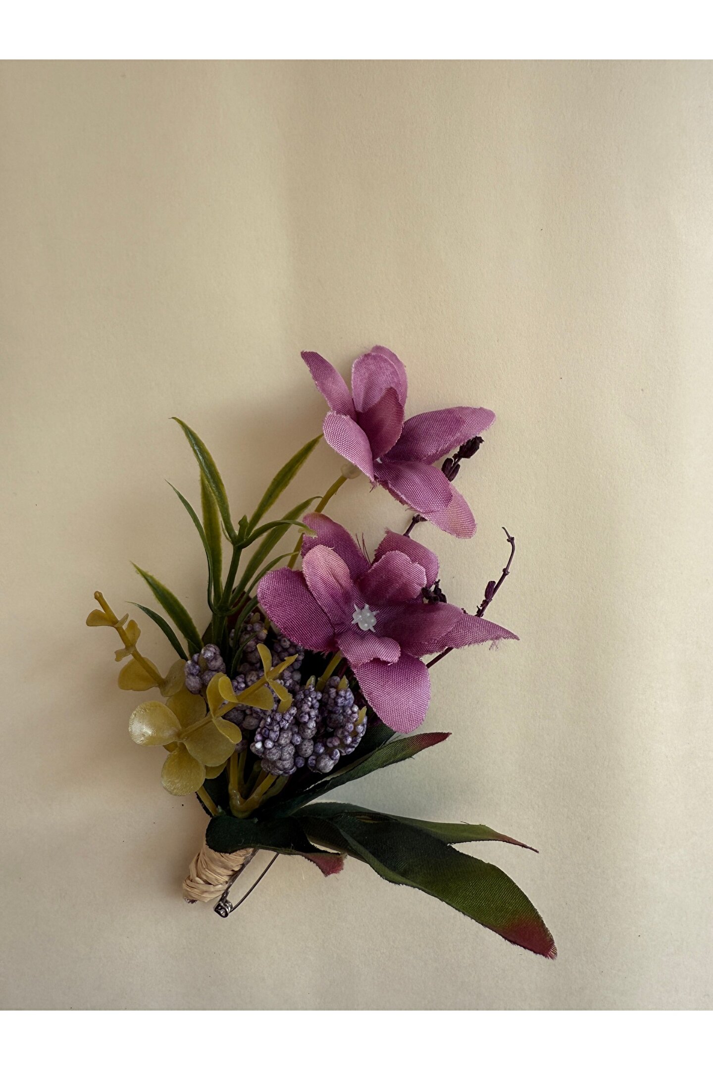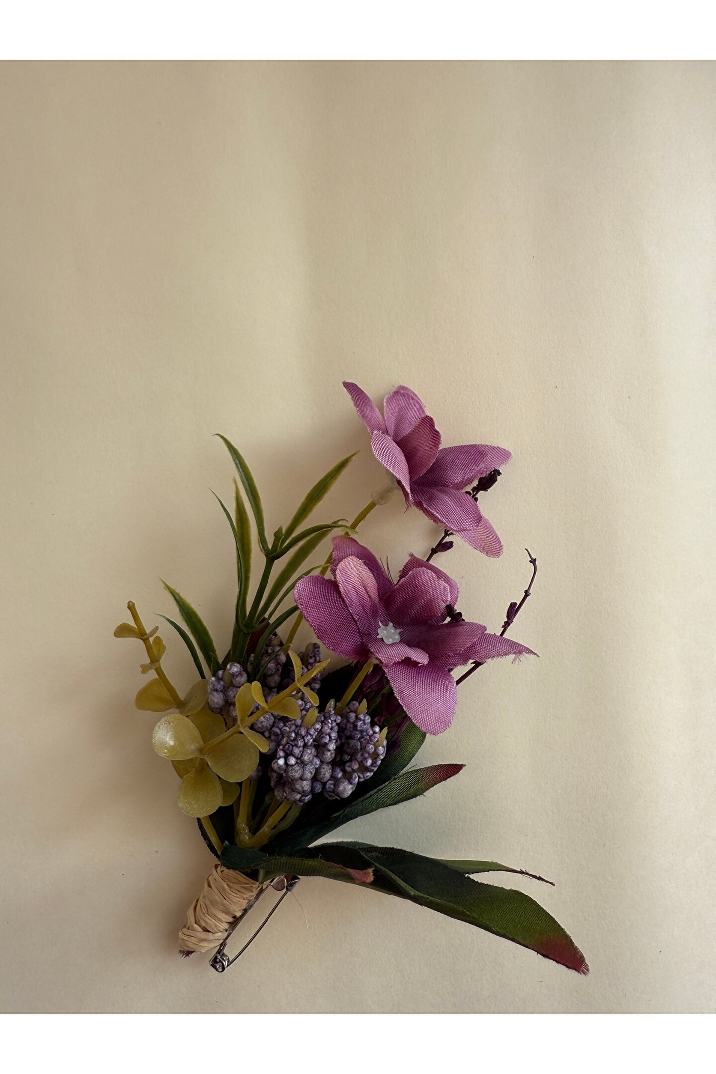 İthal kuru çiçekler ve yapay çiçekler ile hazırlanan özel tasarım damat yaka çiçeği
