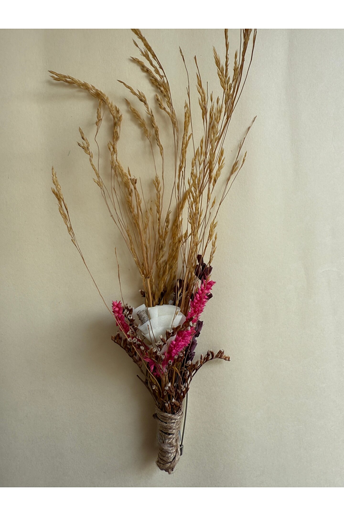 İthal kuru çiçekler ve yapay çiçekler ile hazırlanan özel tasarım damat yaka çiçeği