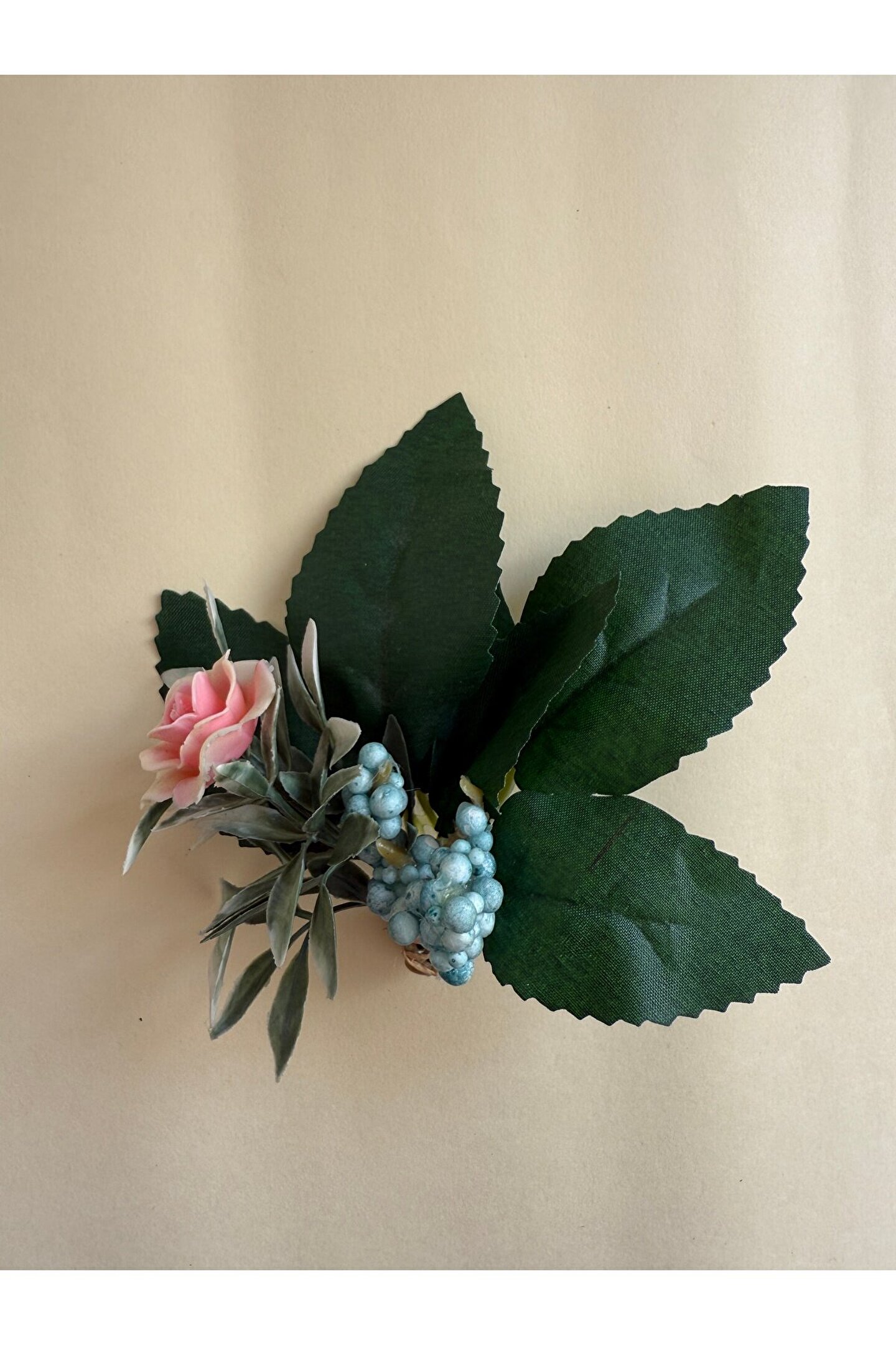 İthal kuru çiçekler ve yapay çiçekler ile hazırlanan özel tasarım damat yaka çiçeği