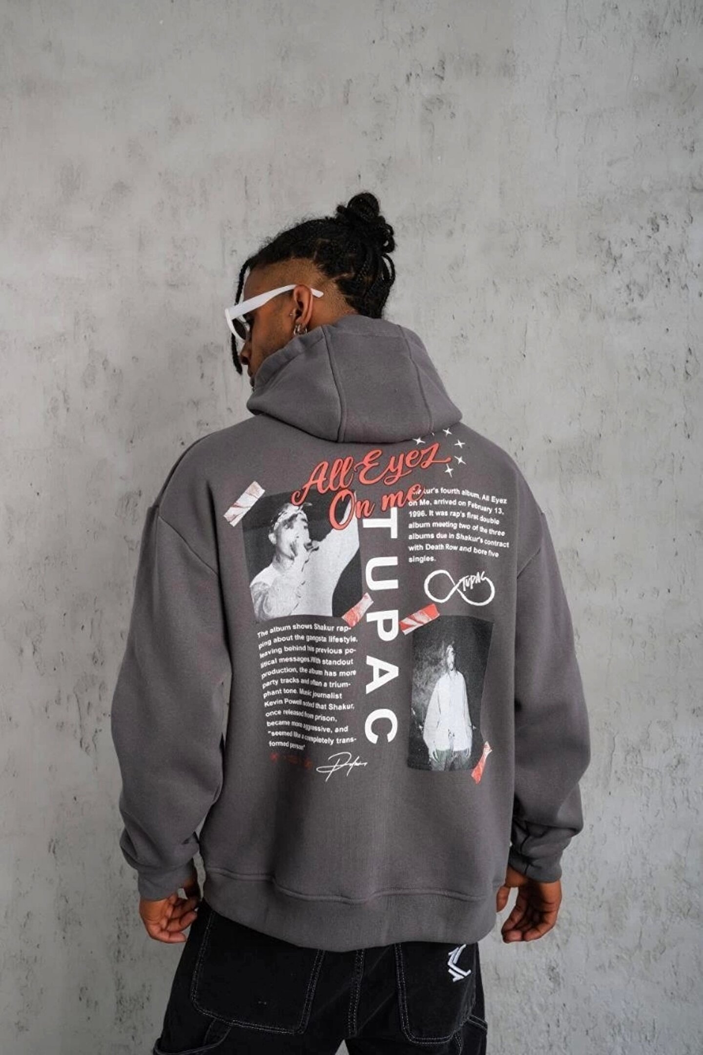 BLACK MODBLACK Erkek Ön Arka Baskılı Kapşonlu Sweat - Gri