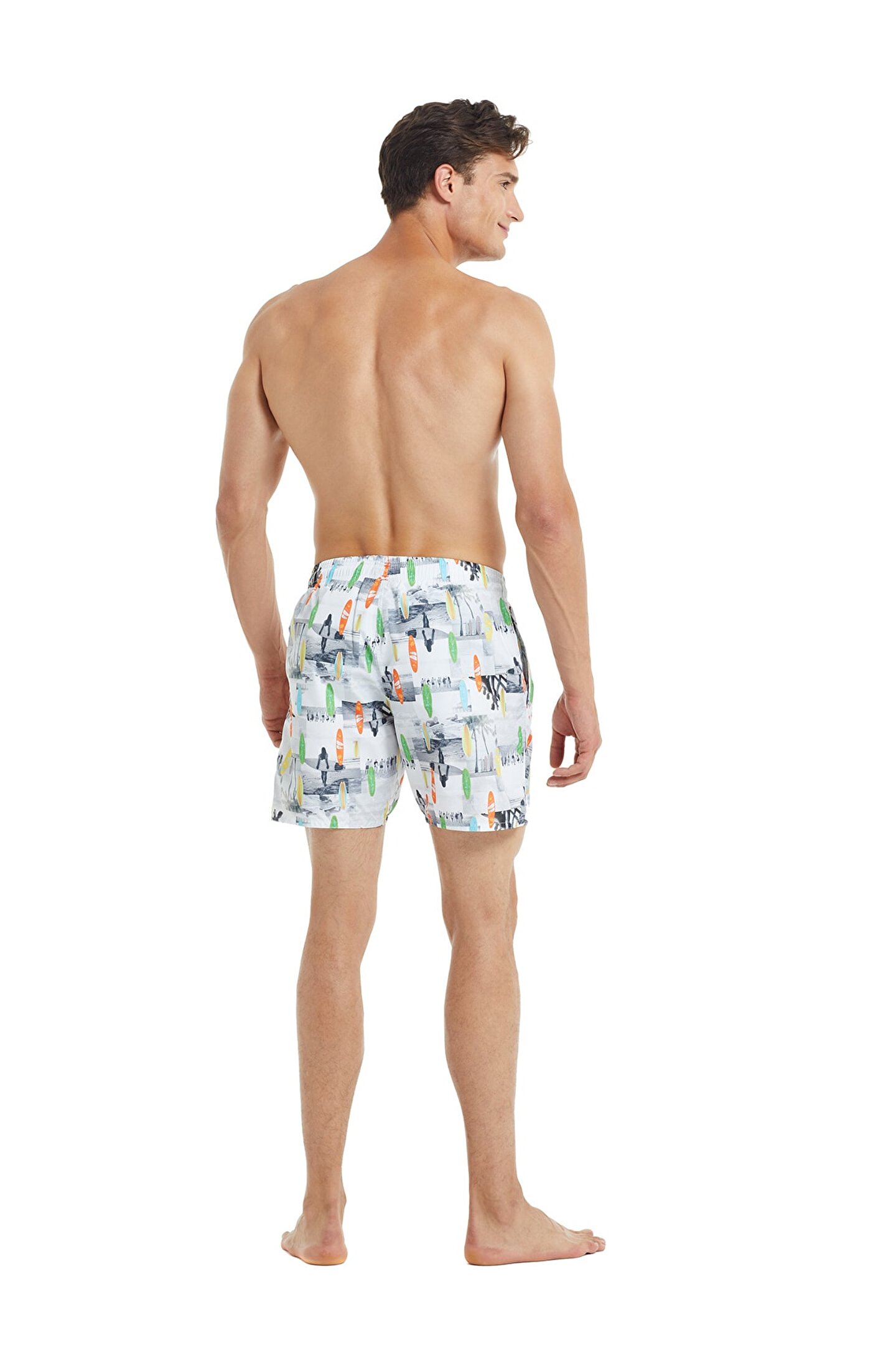 Canlı ve enerjik renkleriyle dikkat çeken çok renkli tasarım, plajda ve havuz kenarında stilinizi yansıtmanızı sağlar; Renkli deseni sayesinde, yaz aylarının enerjisini üzerinizde taşıyarak, güneşin ve denizin tadını çıkarırken şıklığınızdan ödün vermezsiniz; Hafif ve nefes alabilen kumaşı ile gün boyu konforlu bir kullanım sunar; hareket özgürlüğünüzü kısıtlamaz; Çok renkli deniz şortu, plajda veya havuz başında rahatça giyebileceğiniz ideal bir seçenektir; hem şık hem de fonksiyonel bir tasarıma sahiptir;