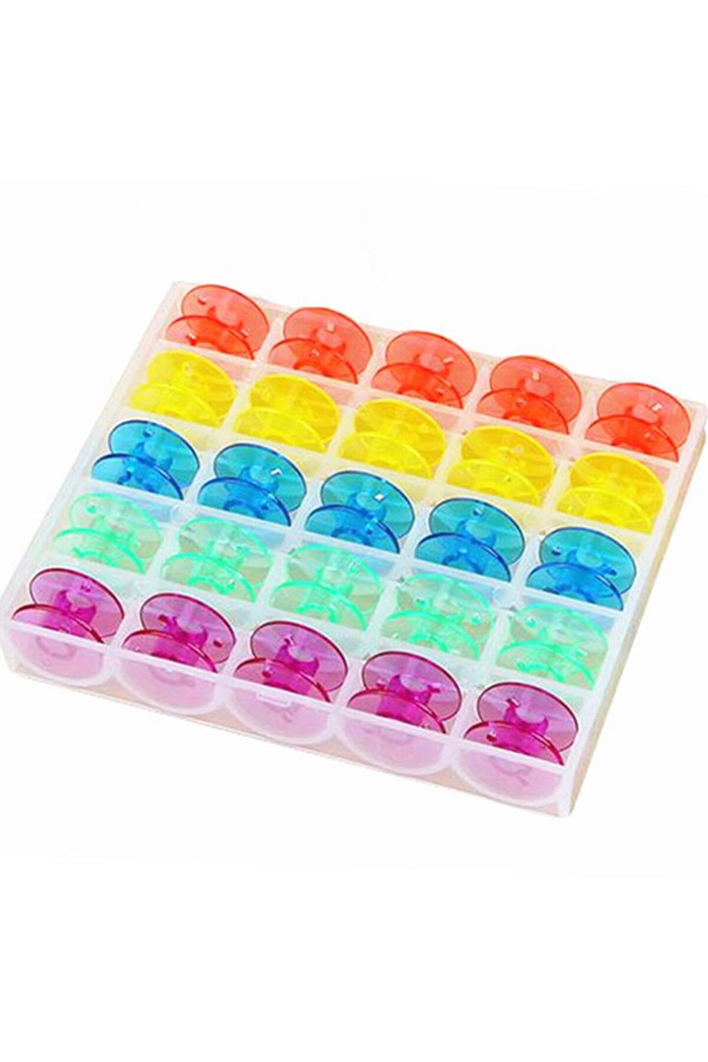 Ev Tipi Dikiş Makinesi Masurası Renkli ve Plastik 25 Adet Ev tipi makinalar için uyumludur.; Masura Çapı 2cm (20mm) ölçüsündedir.; Plastik malzemeden üretilmiştir.25li masura şeffaf kutu içerisinde gönderim yapılır.; Ürün Kodu: Y11.00338