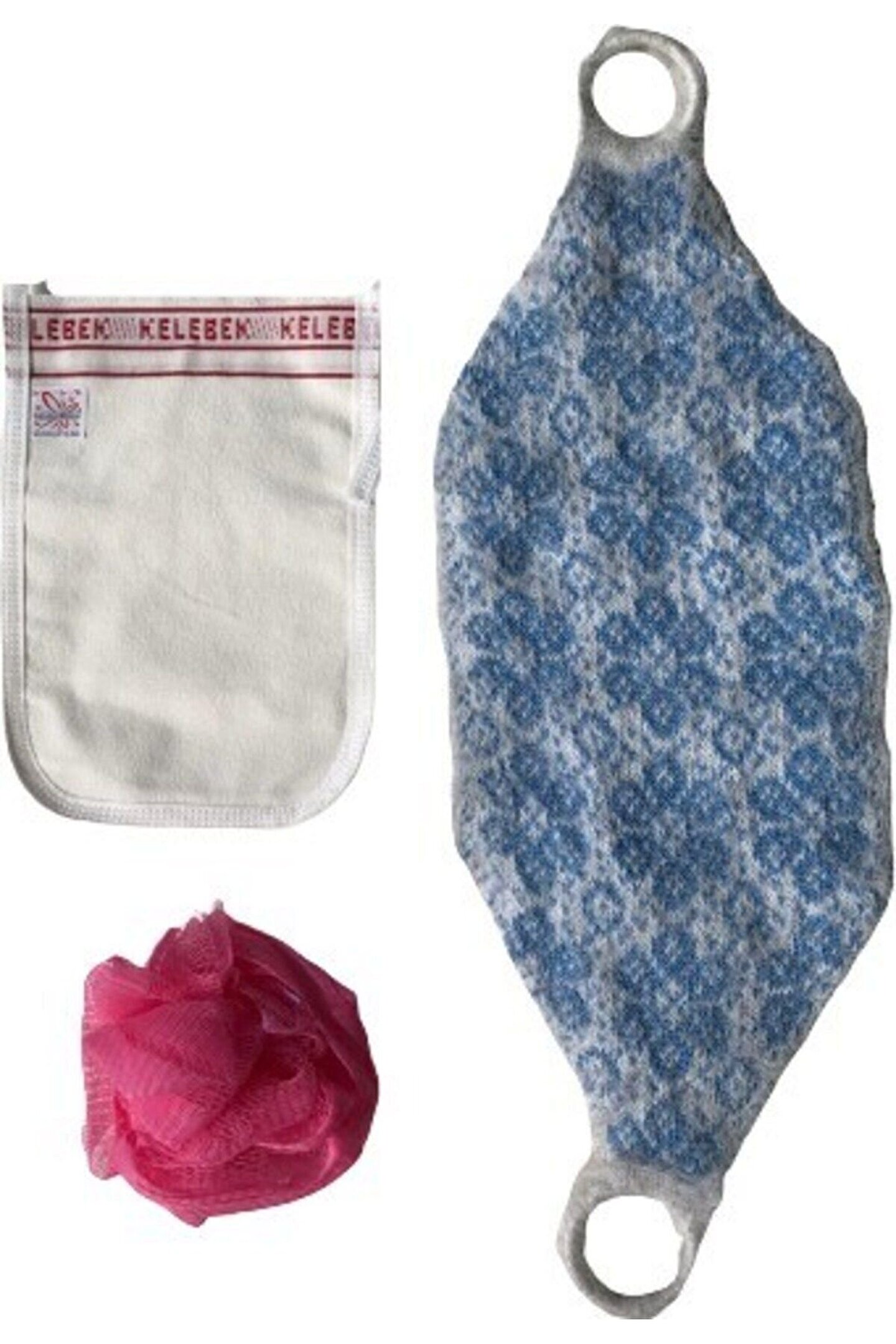 Duş El Örgüsü Lif Kelebek Kese Top Lif Halkalı Örgü+Toplif+Kelbk Kaln 3Lü