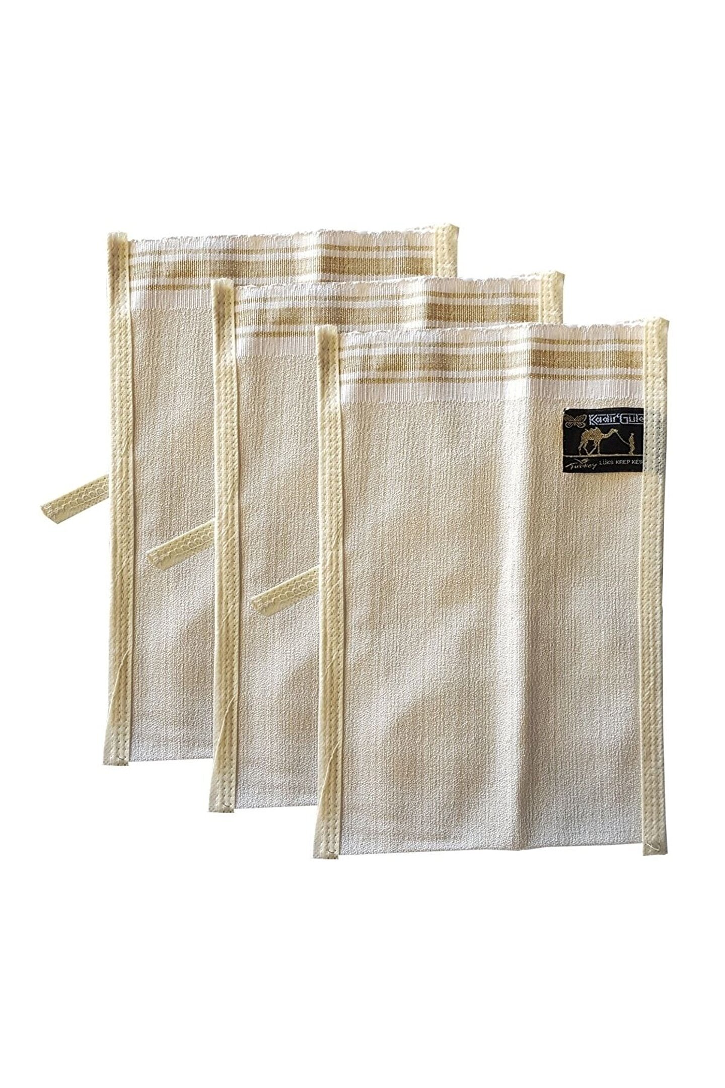 DOĞAL İPLİK KESE KREP DOKULU; FLOŞ İPLİĞİNDEN ÖZENLE DOKUNMUŞTUR;
