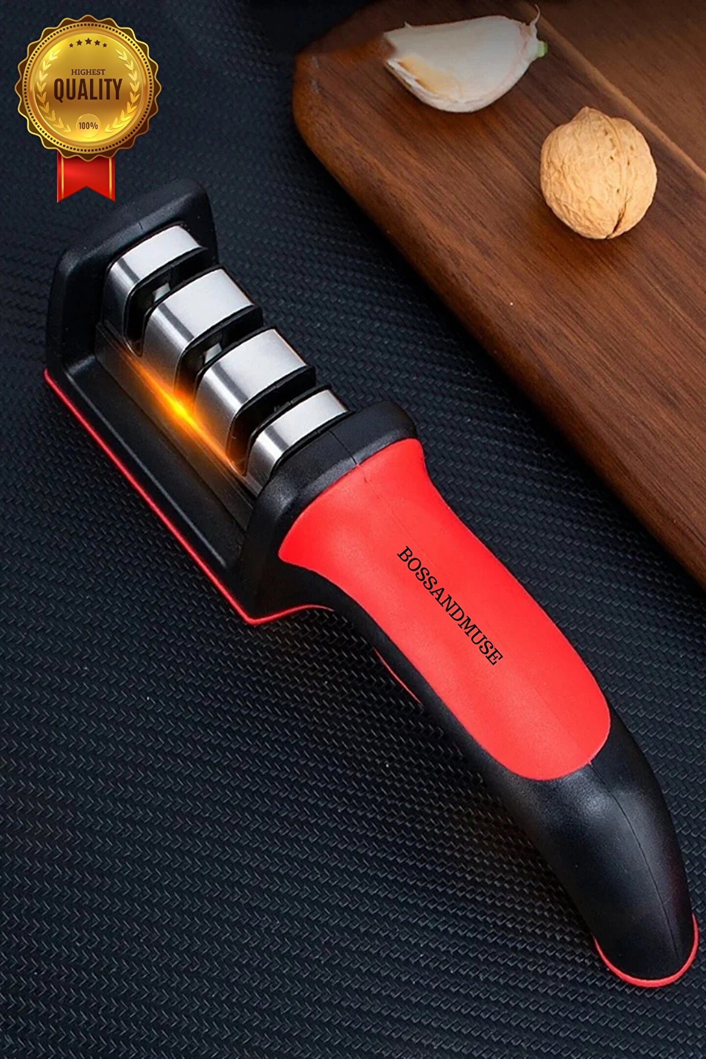 bossandmuse 3 Aşamalı Paslanmaz Çelik 1. Kalite Bıçak Bileme Aparatı Asorti Renkli BSR7-1L
