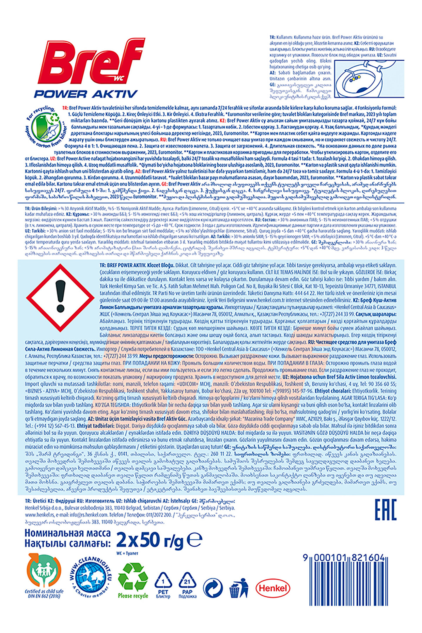 Bref WC Power Aktiv Duopack Katı Tuvalet Bloğu Limon, 5 x 2\'li Paket