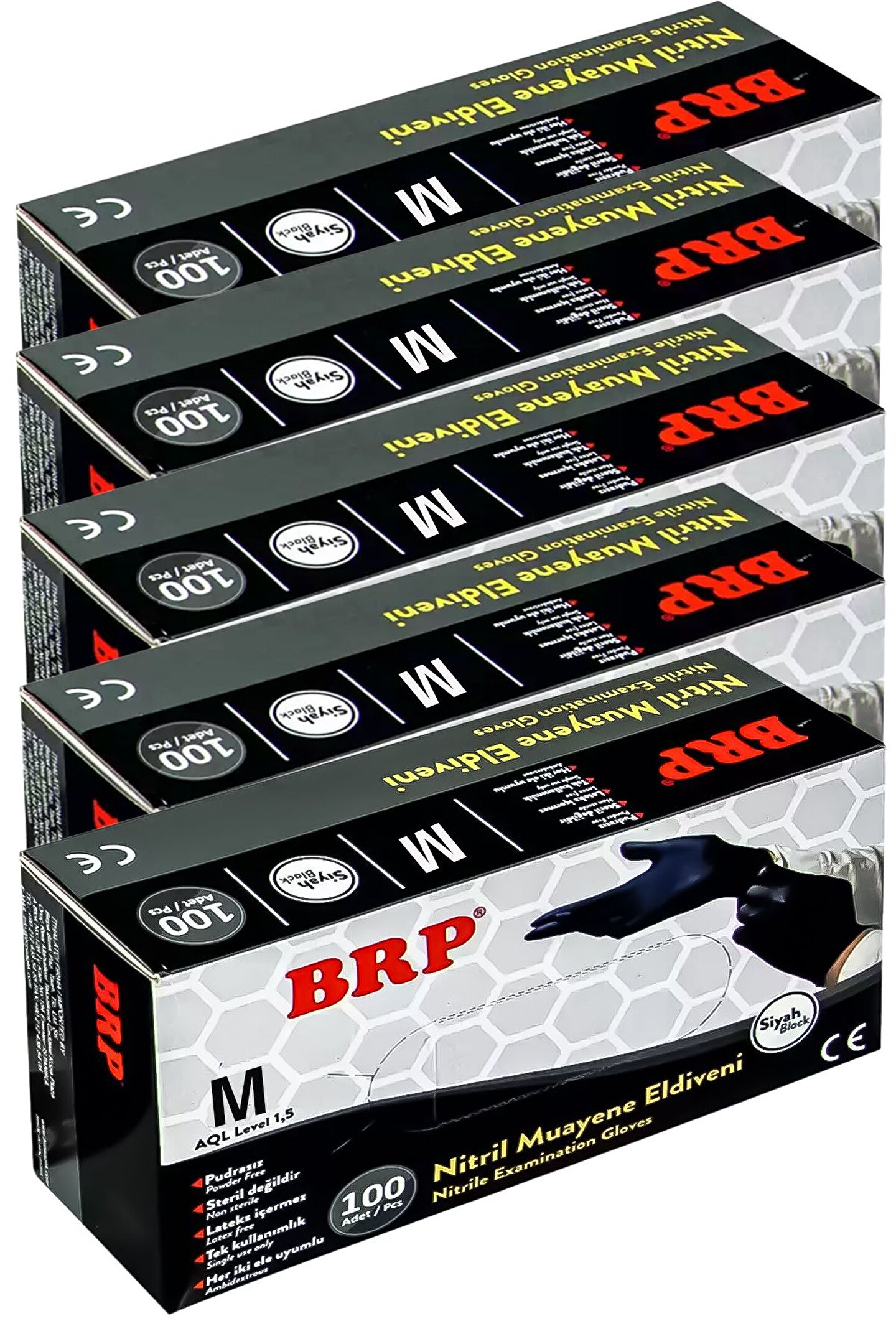 Çok Amaçlı, gıdaya uyumlu, siyah nitril eldiven (M) 500adet, Medium 100lü 5 paket