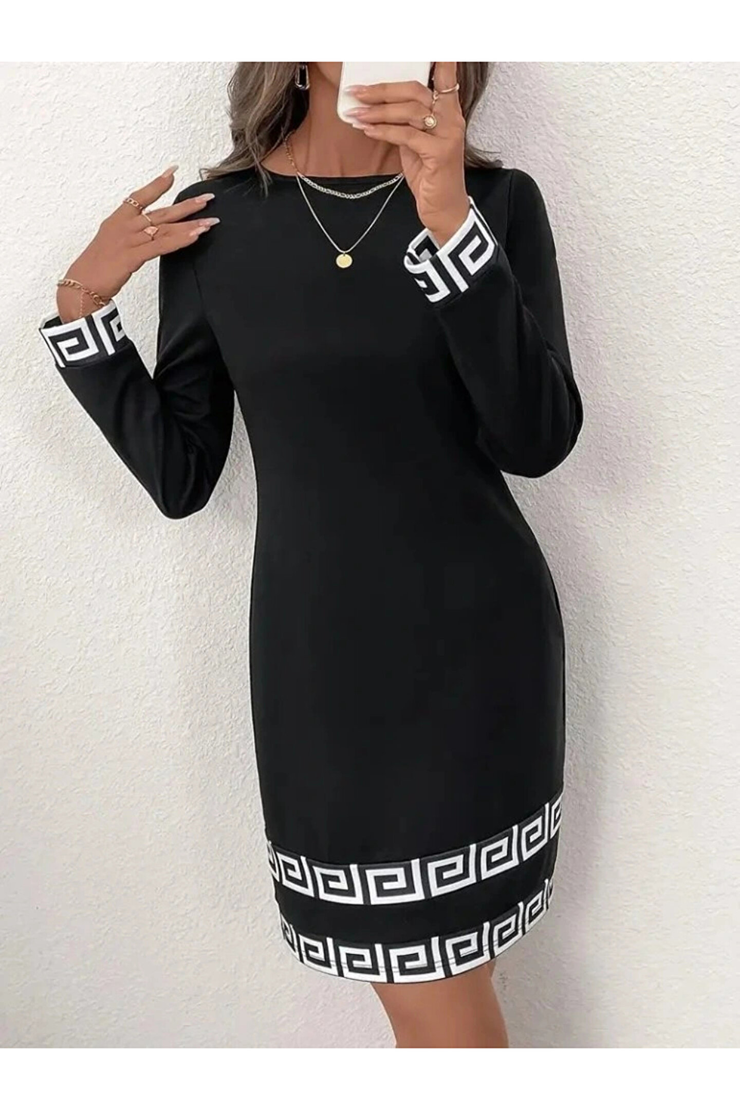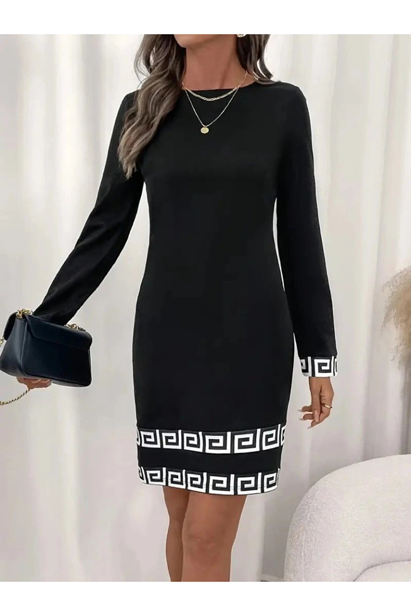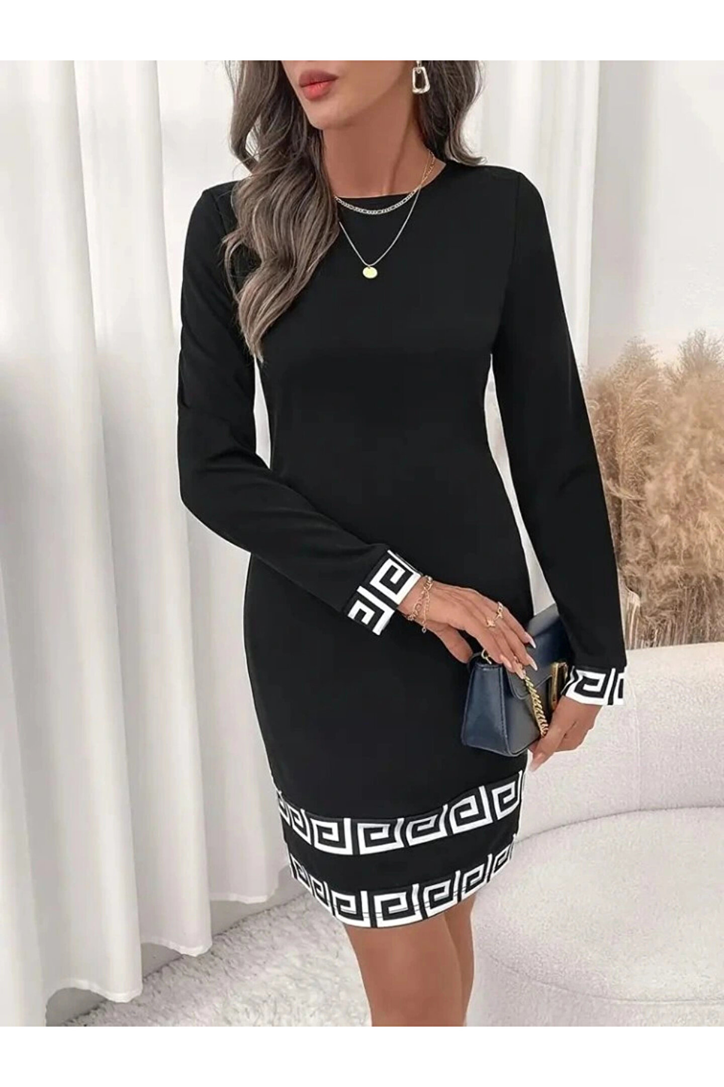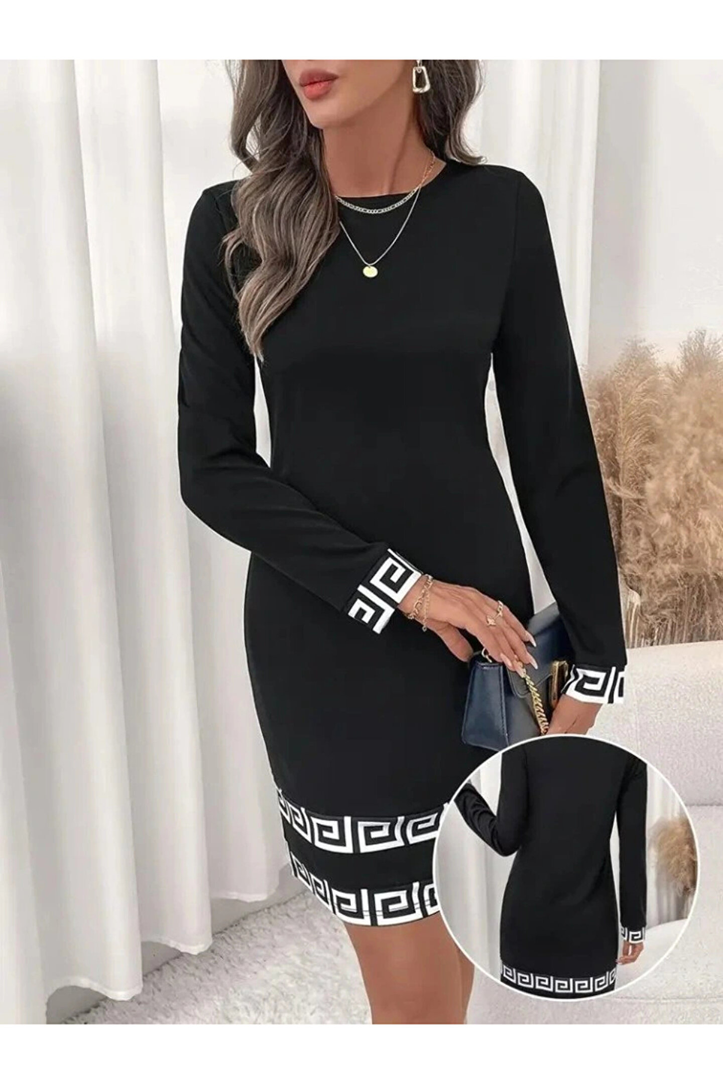 BÜŞRA TEZEL MODA Kadın Uzun Kollu Bisiklet Yaka Mini Ithal Krep Elbise