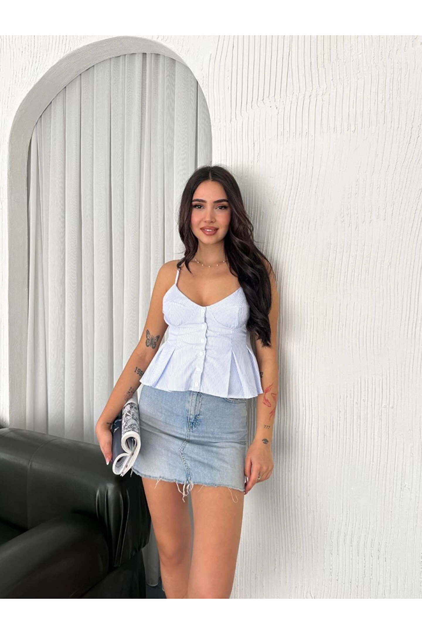 BÜŞRA TEZEL MODA Velmora Premium Askılı Dekolte detaylı crop - Açık Mavi -VLMR