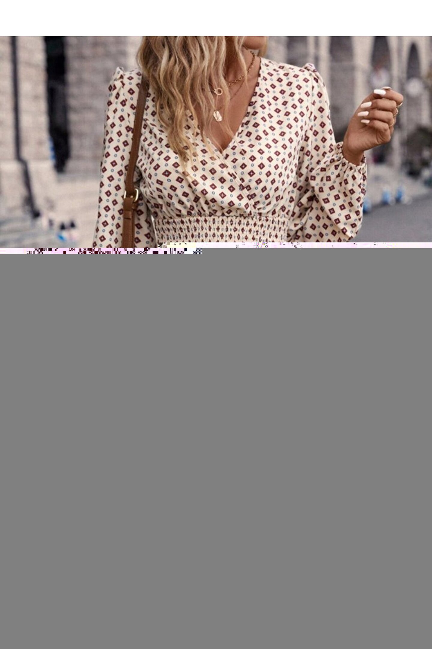 Butik EQURİ Kadın Uzun Kollu Kruvaze Yaka Desenli Mini Modal Elbise