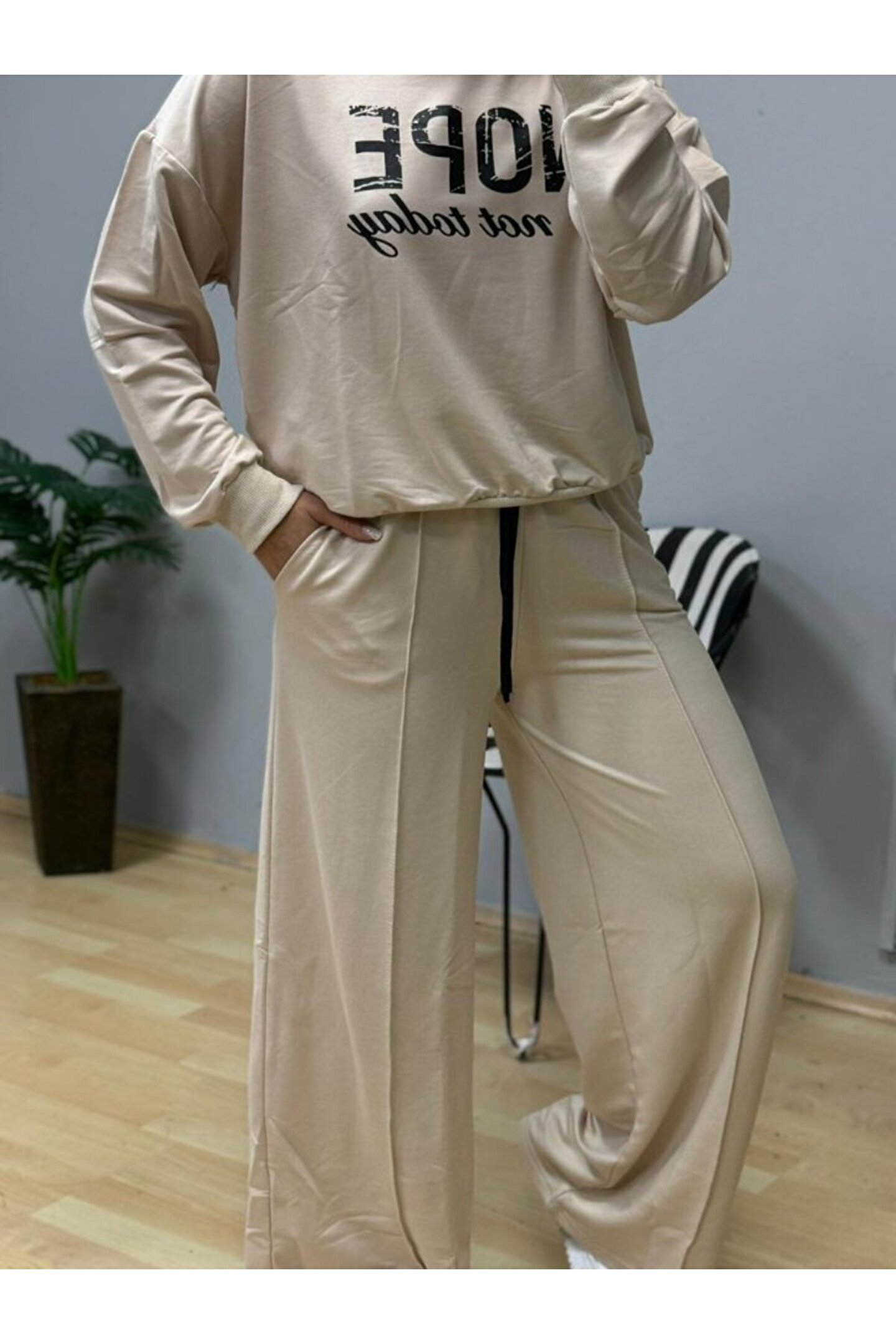 Kadın Uzun Kollu Nope Baskılı Beli Ribanalı Ikili Takım