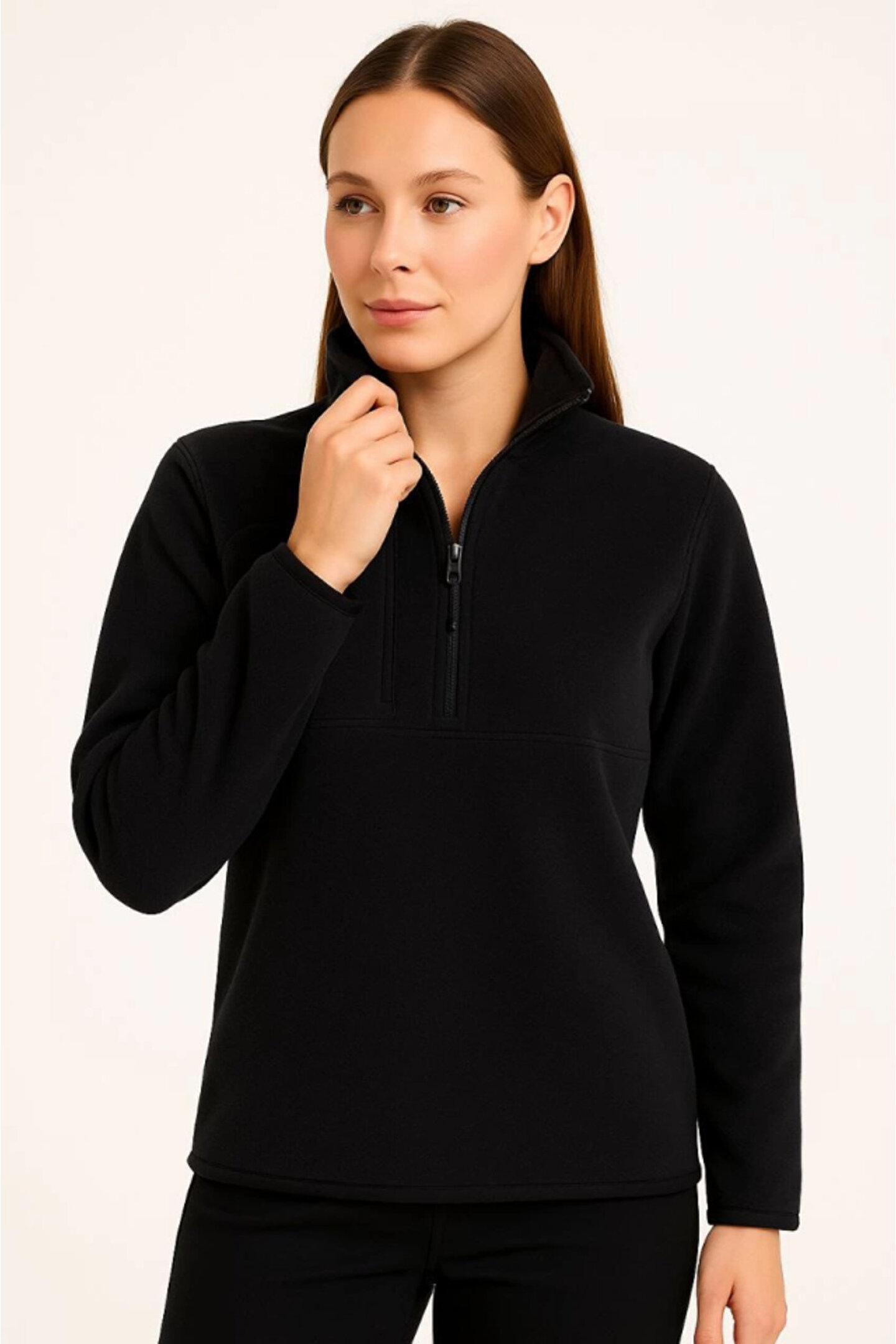 Butik EQURİ Polar Kazak – Dik Yaka, Yarım Fermuarlı, Fermuarlı Göğüs Cepli, Siyah Biyeli, Kışlık Rahat Reg