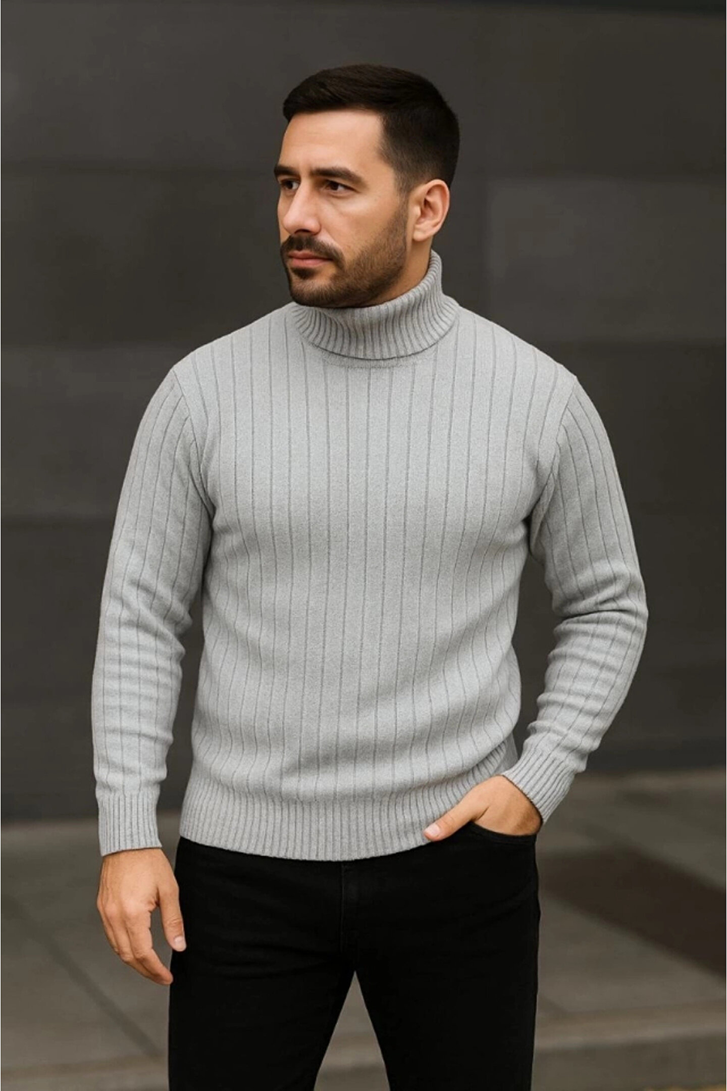 Erkek balıkçı yaka triko, kalın fitilli dokuma yapısı sayesinde hem sıcak tutar hem de konforlu bir kullanım sunar.; Pamuk karışımlı örme kumaş, yumuşak dokusuyla gün boyu rahatlık sağlar.; Regular kalıp formu vücuda doğal bir şekilde oturur ve hareket özgürlüğünü kısıtlamaz.; Balıkçı yaka detayı ürüne modern, şık ve güçlü bir siluet kazandırarak özellikle kış kombinlerinde öne çıkar.; Ribanalı yaka, kol ucu ve etek ucu formun korunmasına yardımcı olur ve ürünün uzun ömürlü kullanımını destekler.; Soğuk havalarda sıcak tutan yapısı sayesinde şehir yaşamı, ofis tarzı ve günlük kullanım için ideal bir tercihtir.; Minimal ve zamansız tasarımı sayesinde jean, kumaş pantolon veya kışlık kabanlarla kolayca kombinlenebilen çok yönlü bir trikodur.