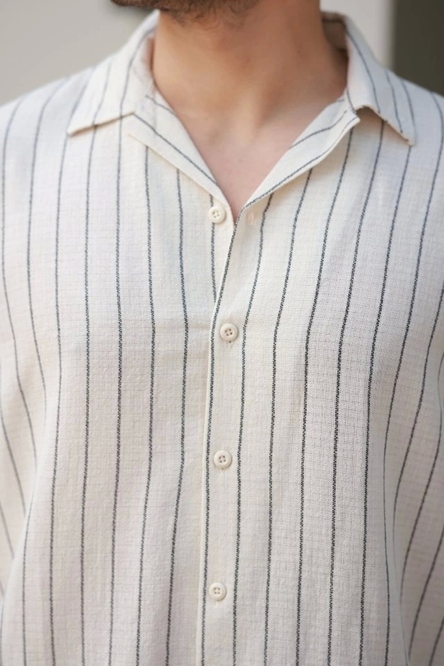 Erkek çizgili Keten Gömlek