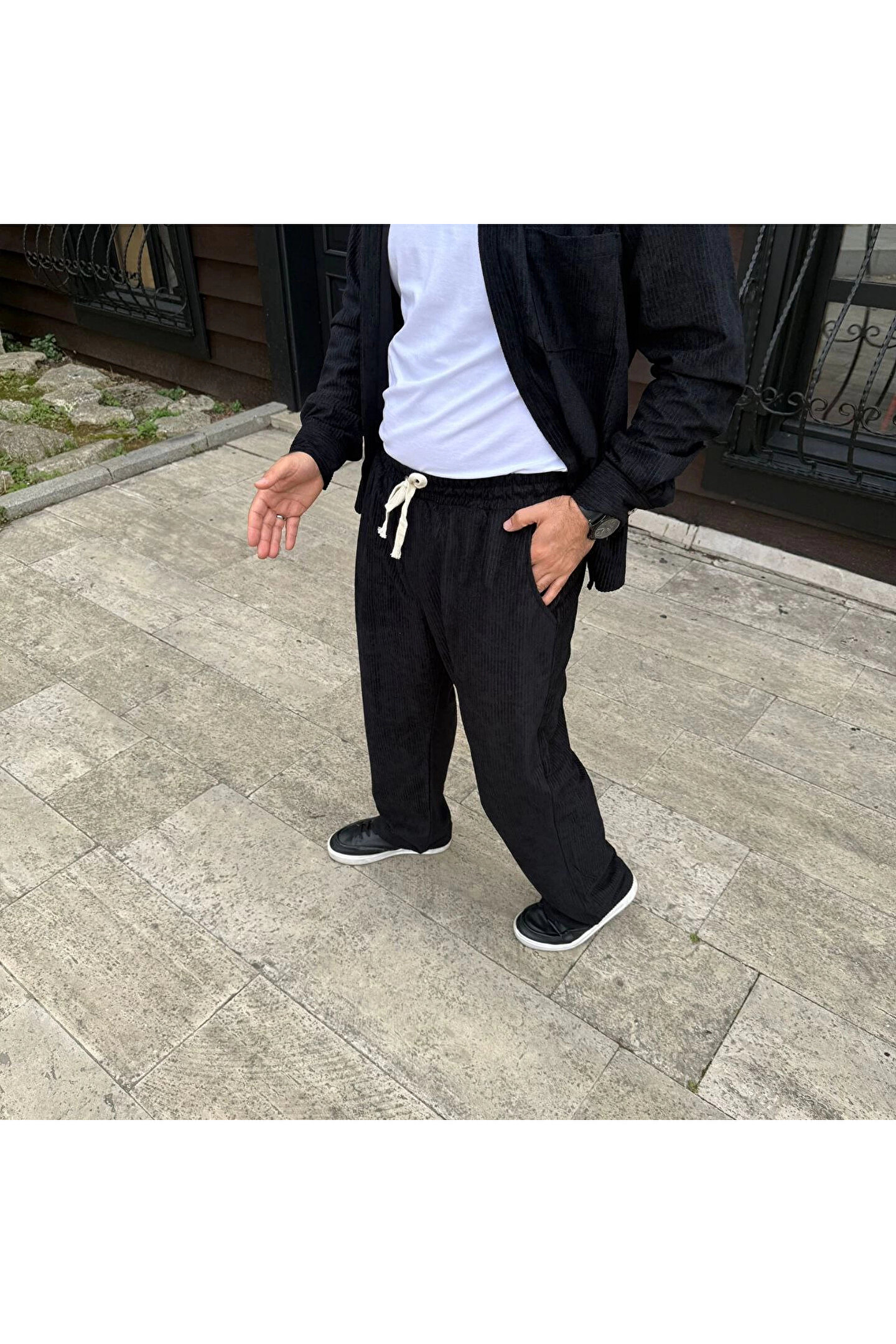 Butik Erkek Kadife Oversize Takım – Gömlek ve Pantolon İkili Set Füme Corduroy Şıklığı, Rahat ve Zarif Dur
