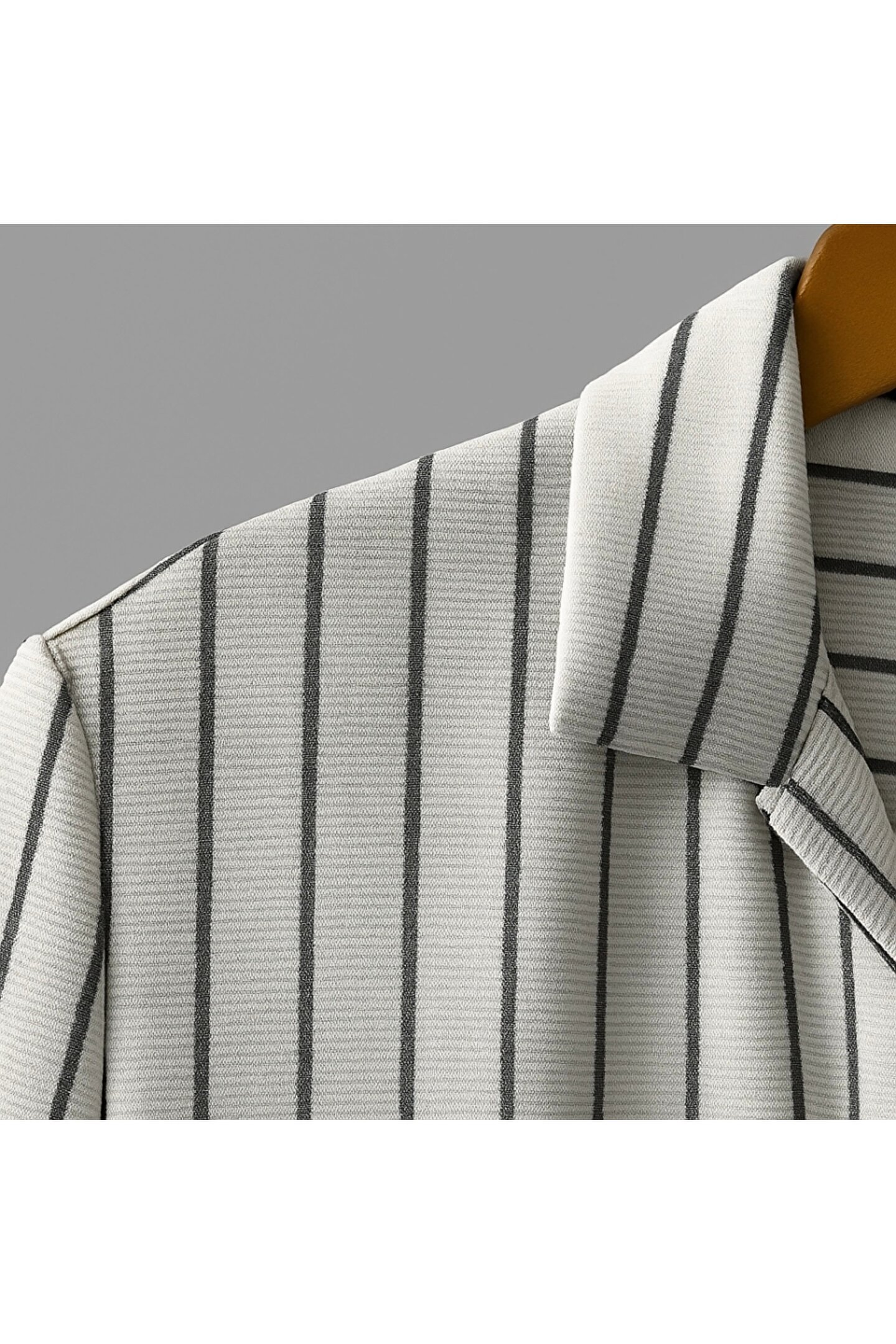 Butik Erkek Kısa Kollu Gri çizgi Desenli örme Kumaş Pamuklu Gömlek