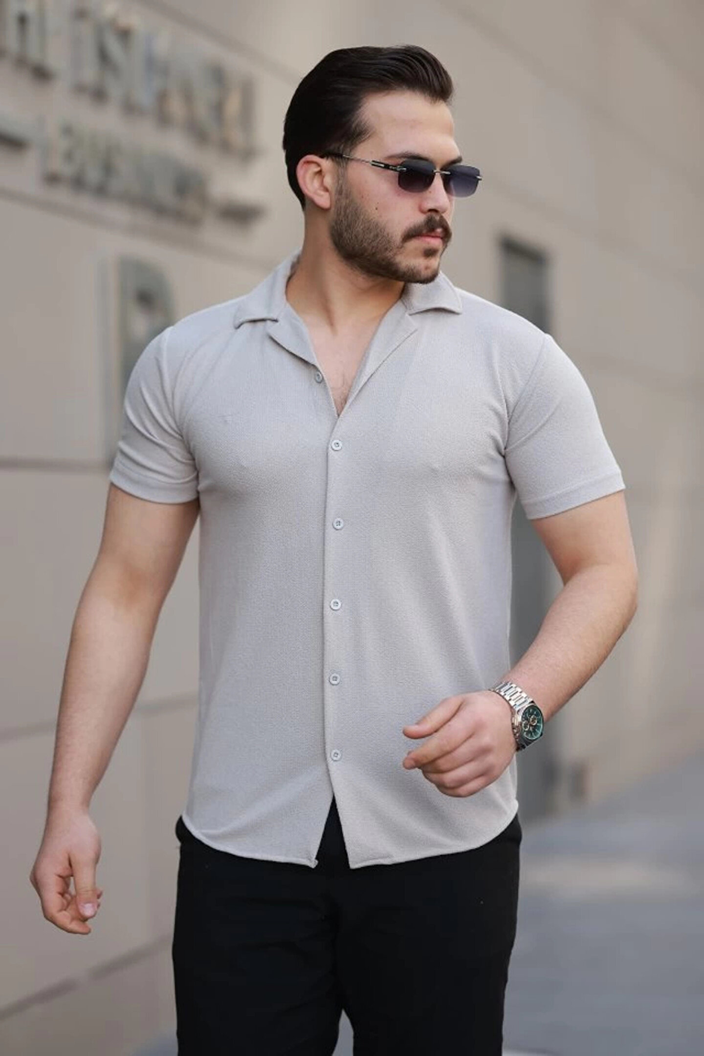 Butik Erkek Kısa Kollu örme Kumaş Pamuklu Gömlek