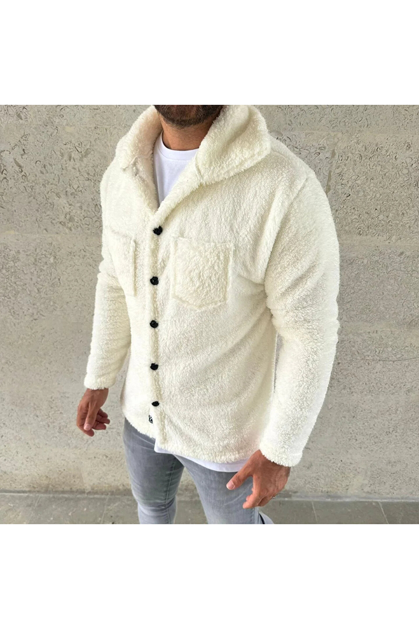 Butik Erkek Pelüş Polar Hırka Gömlek – Yakalı, İlik Düğmeli, Göğüs Cepli, Yumuşak Dokulu Kışlık Regular Fi