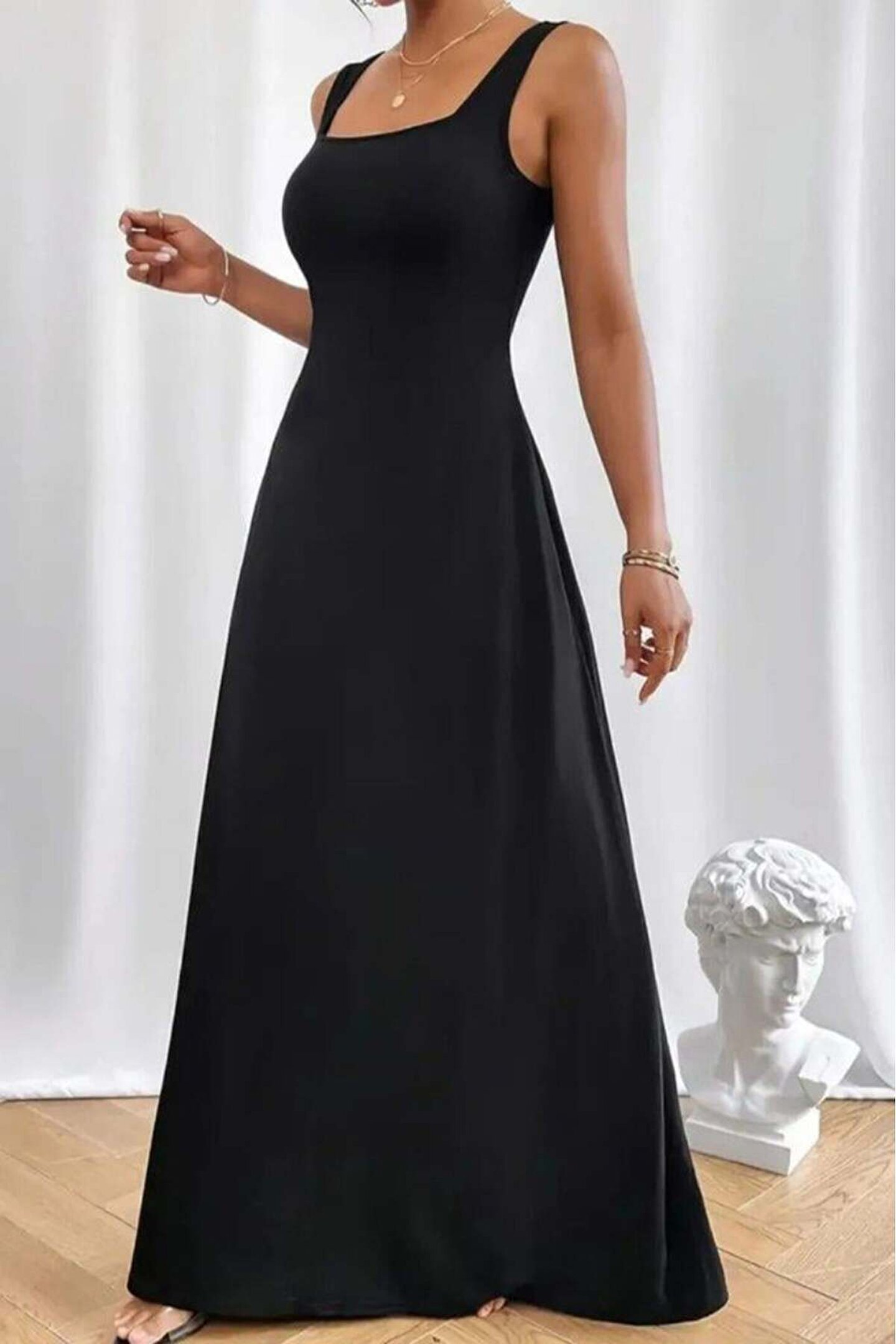 Kadın Askılı U Yaka Janjan Krep Elbise
