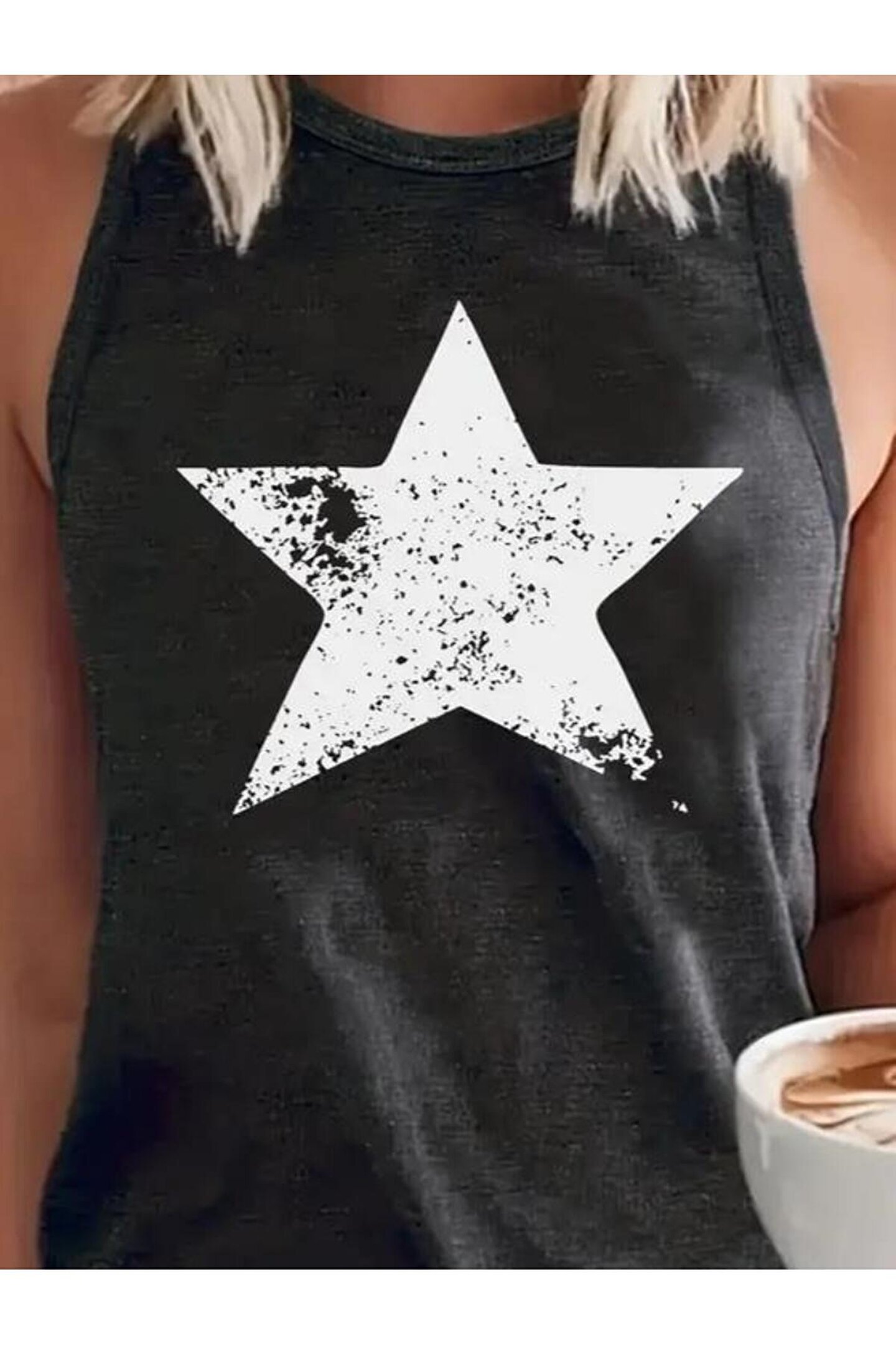 Kadın Askılı Yuvarlak Yaka Yıldız Desenli Süprem Bluz
