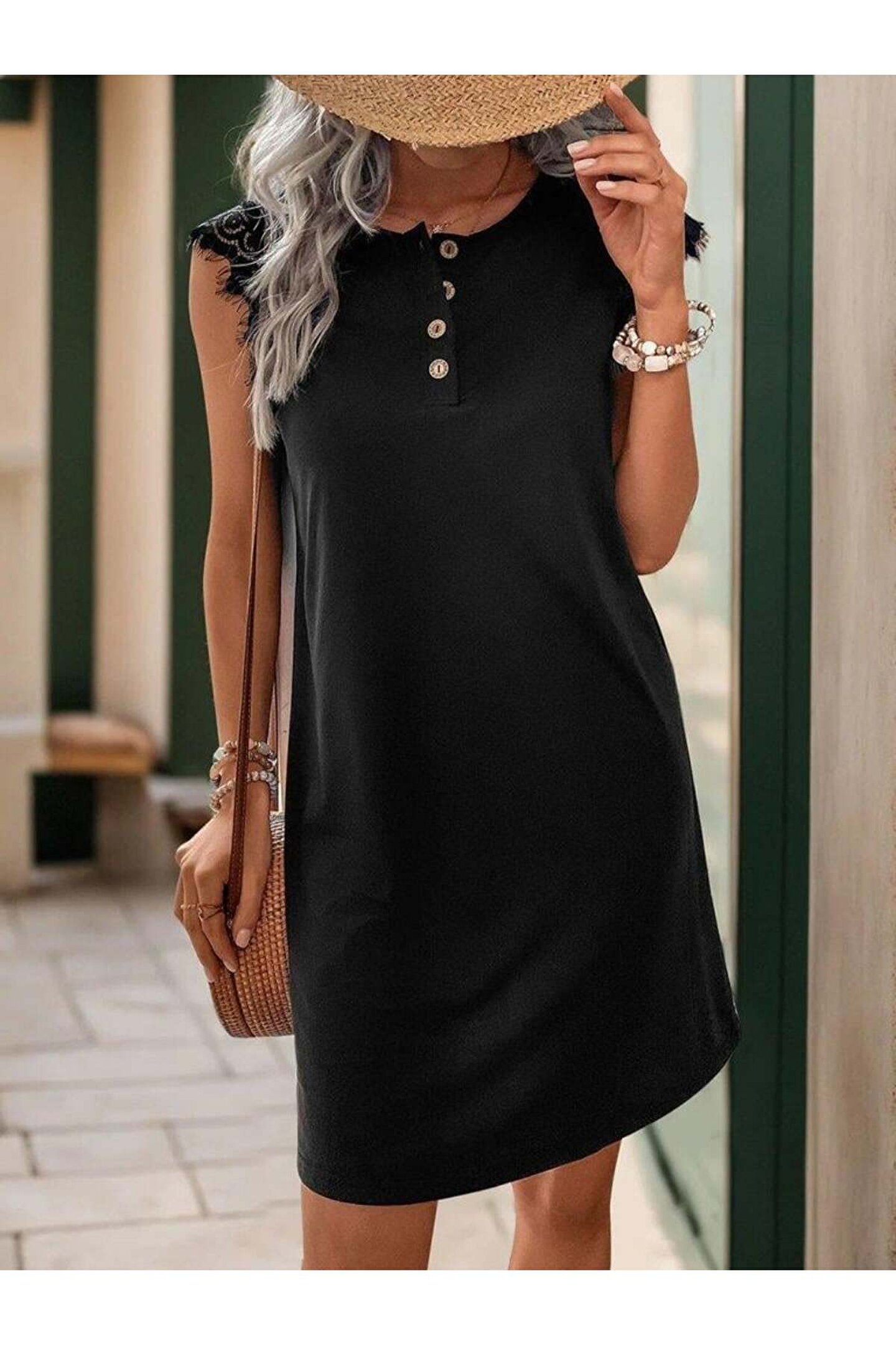 Butik Kadın Kısa Dantel Kollu önden Düğmeli Viskon Elbise