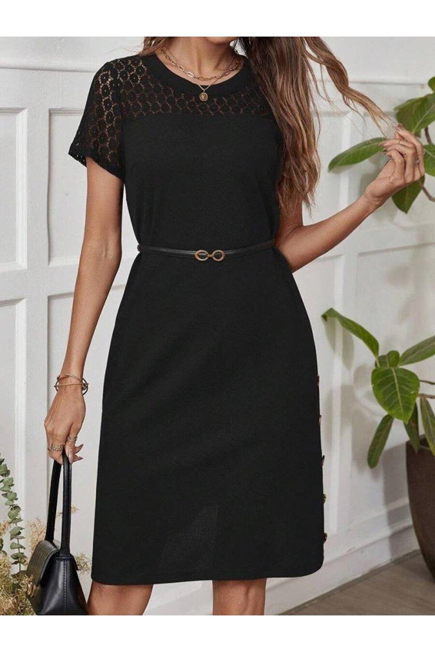 Kadın Kısa Kollu Bisiklet Yaka Dantel Detaylı Düğmeli Modal Elbise.; Ürün detayları ve kullanım hissi kişisel tercihlere göre değişiklik gösterebilir.