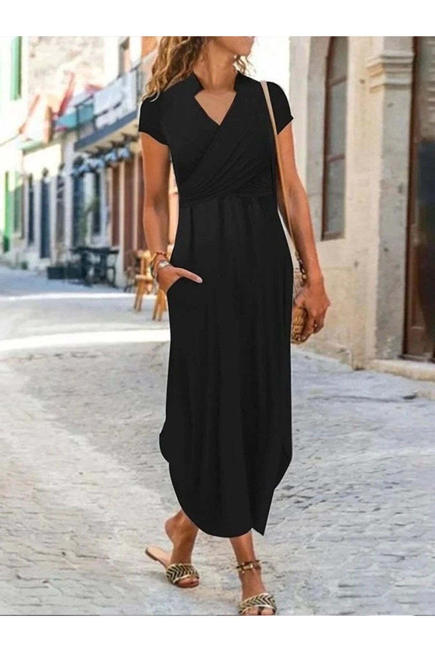 Kadın Kısa Kollu Hakim V Yaka Viskon Elbise