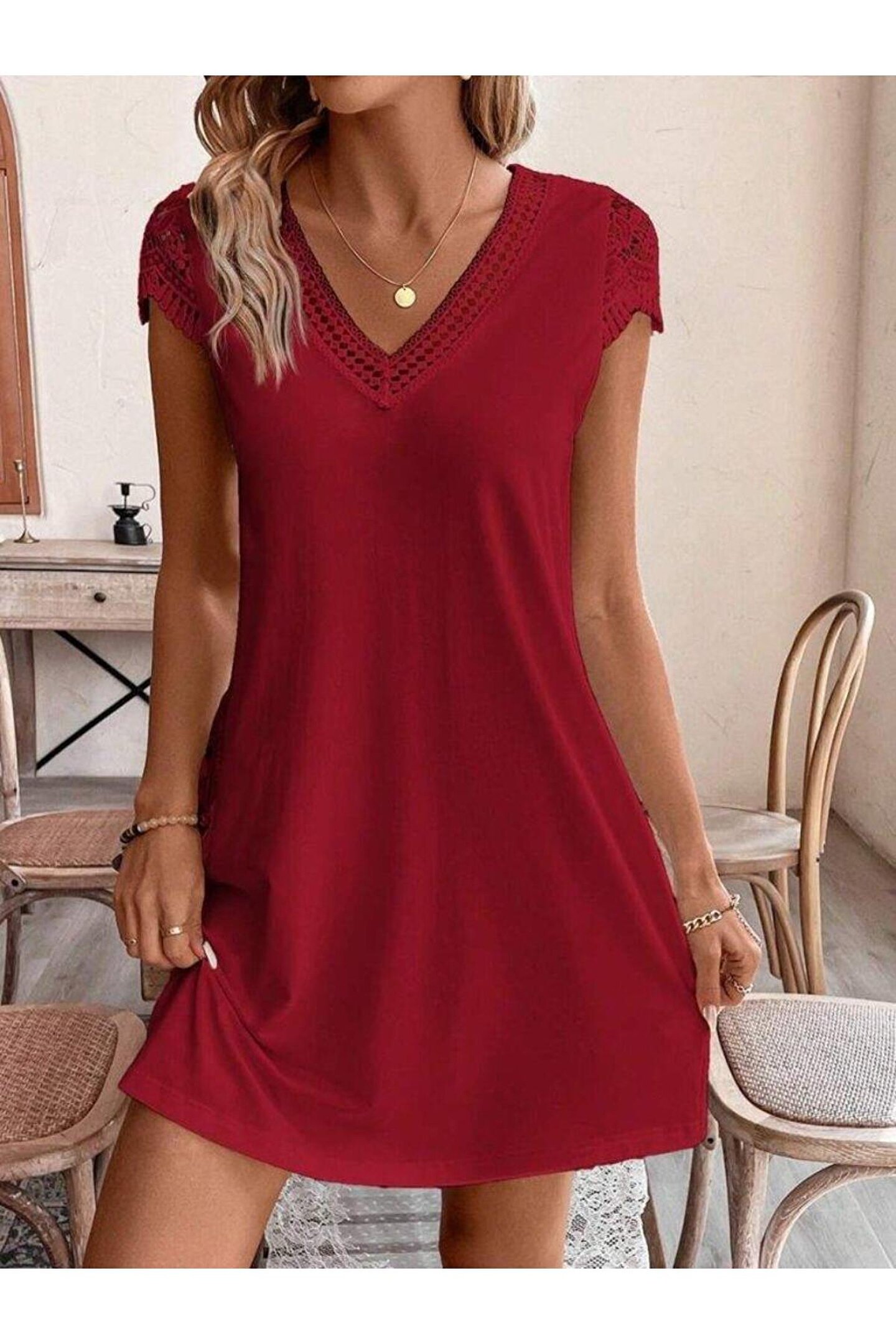 Butik Kadın Kısa Kollu V Yakalı Viskon Elbise