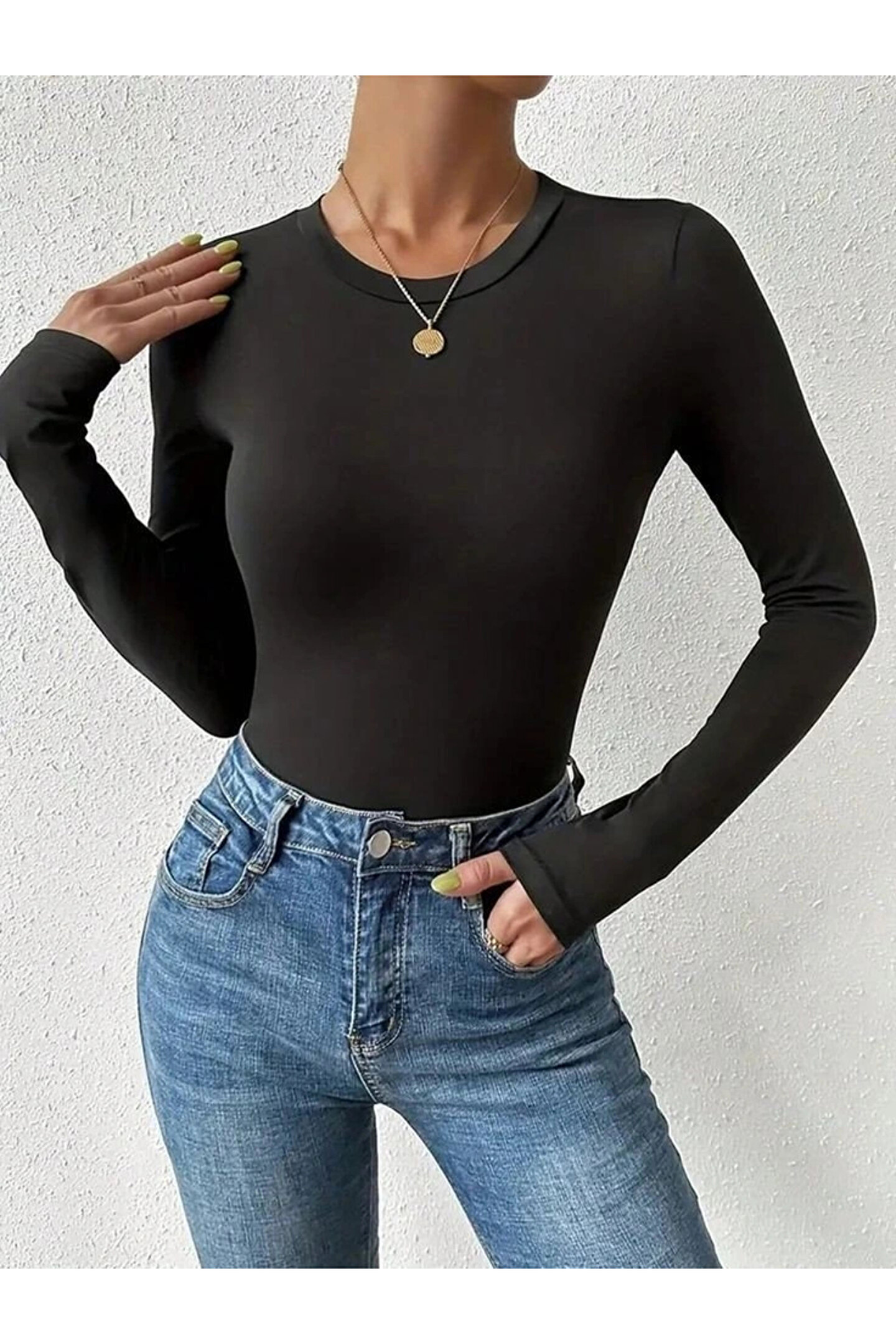 Butik Kadın Uzun Kollu Bisiklet Yaka Süprem Bluz
