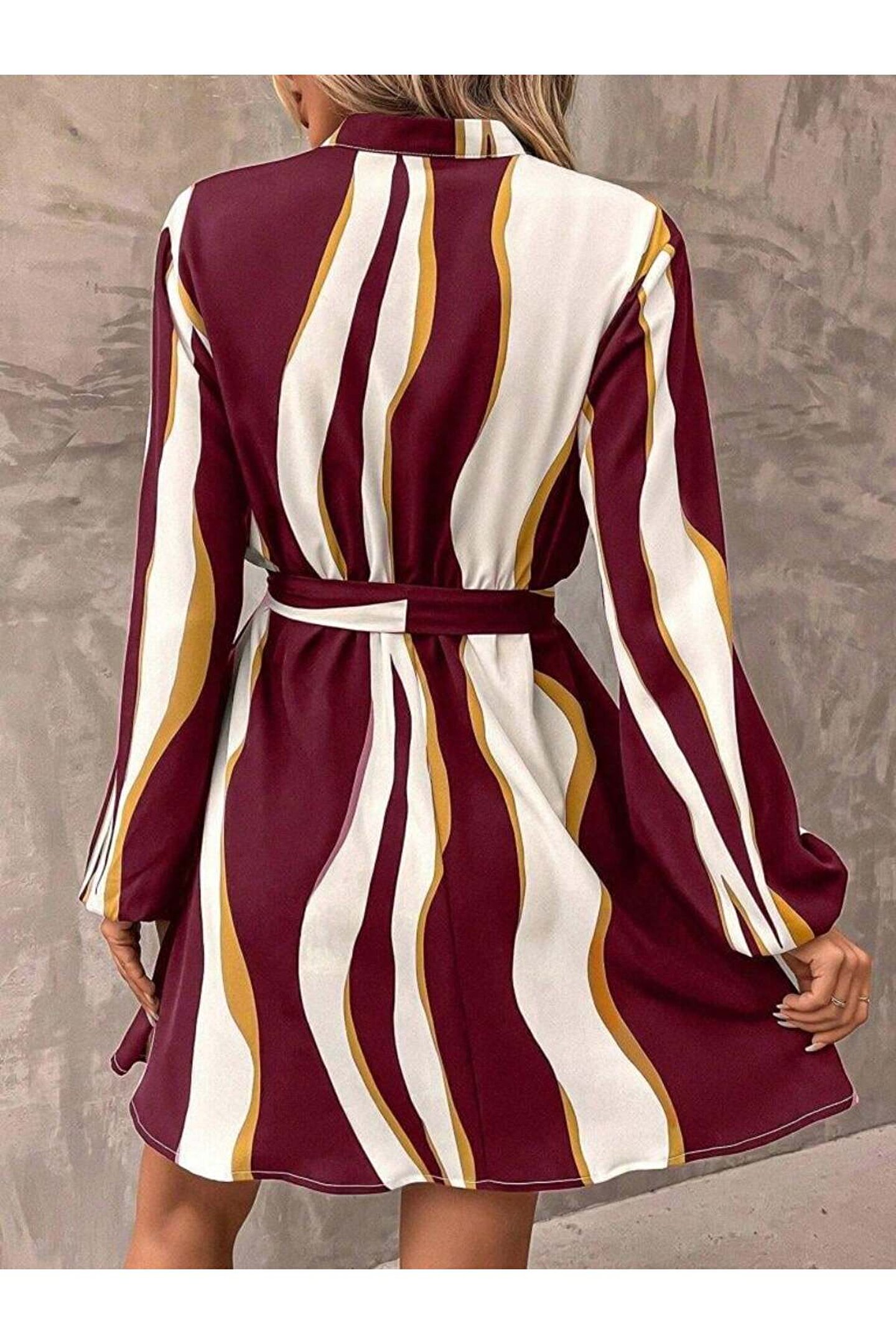 Butik Kadın Uzun Kollu Kruvaze Yakalı Desenli Modal Mini Elbise