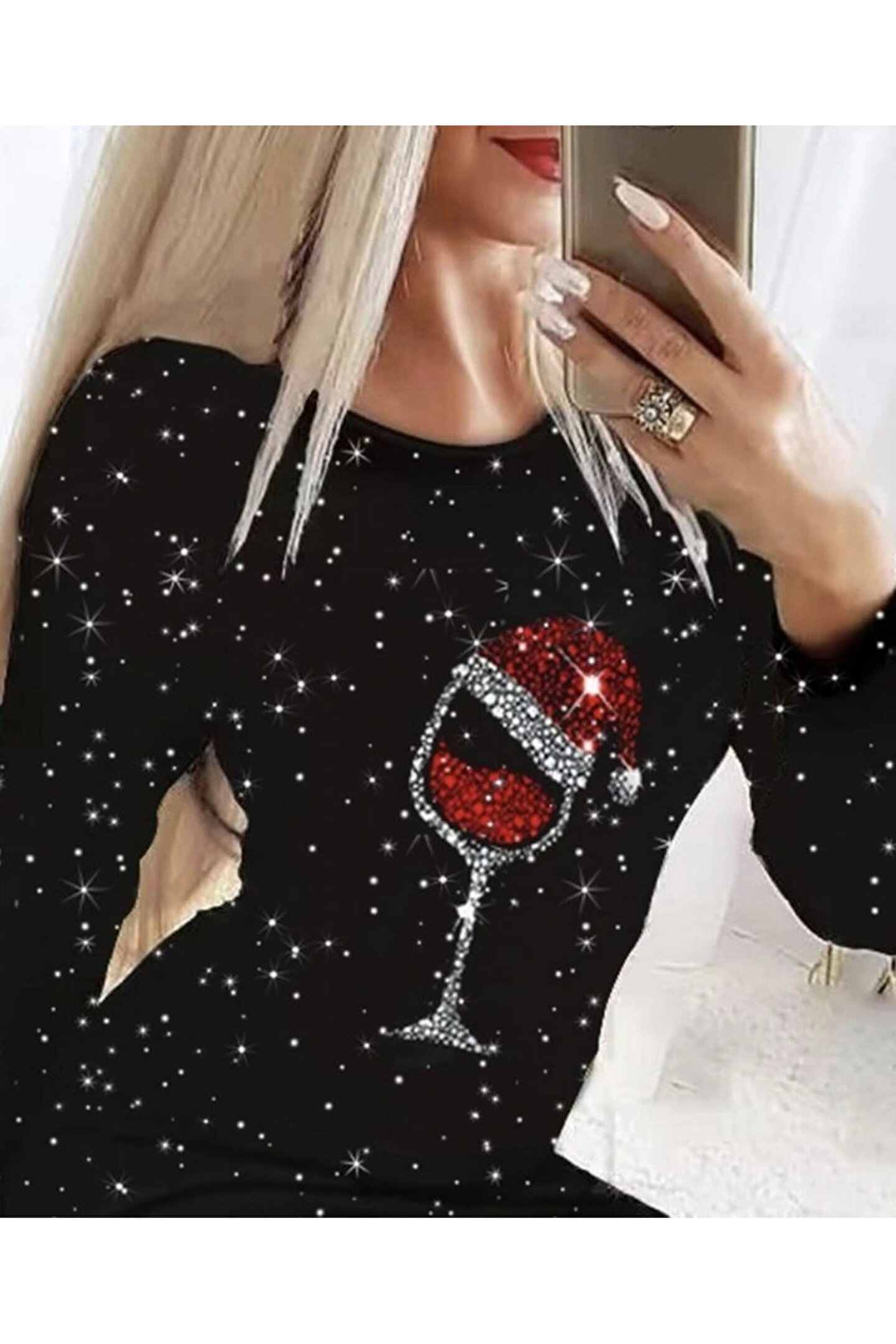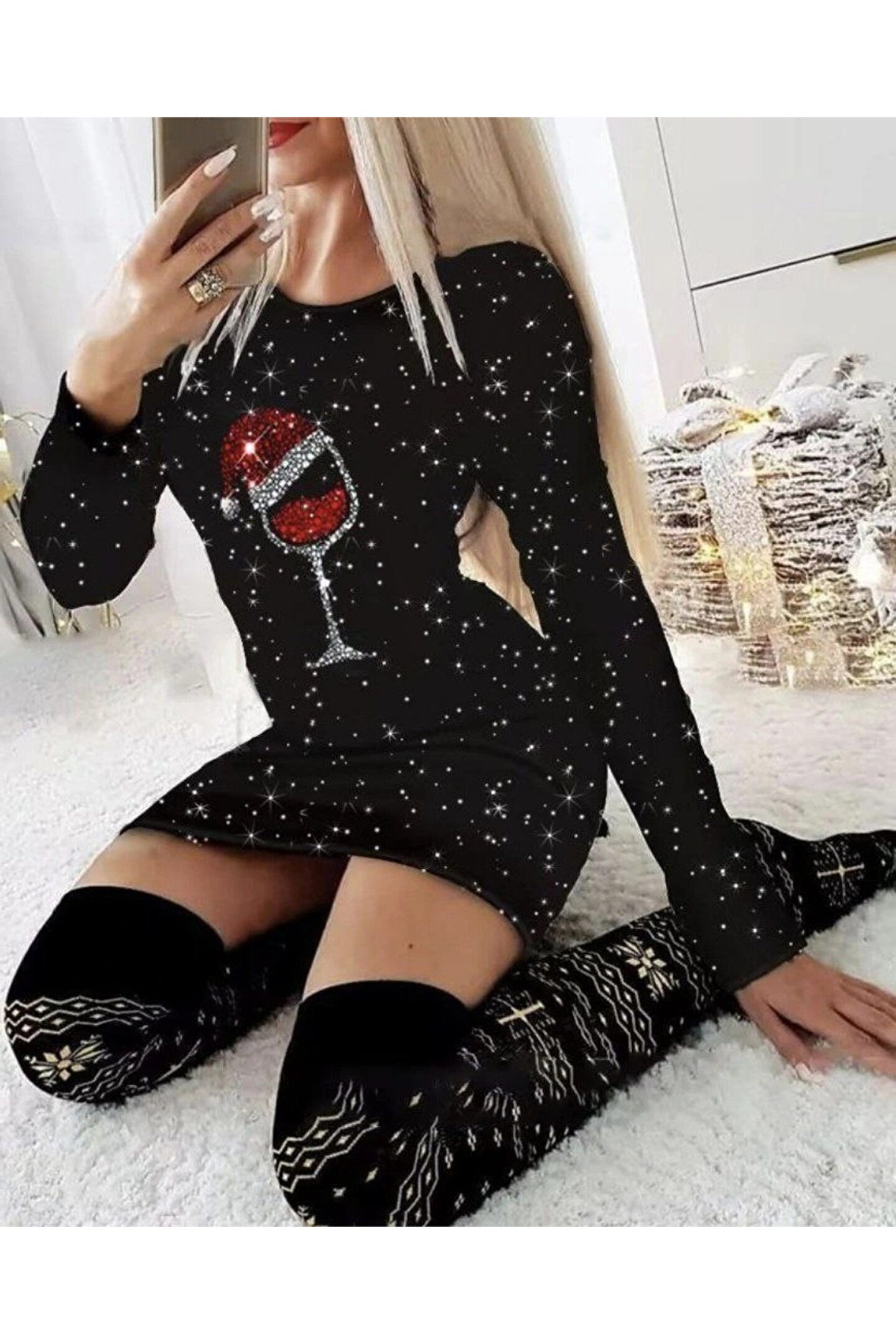 Butik Kadın Uzun Kollu Taş Kadeh Baskı Dalgıç Mini Boy Elbise