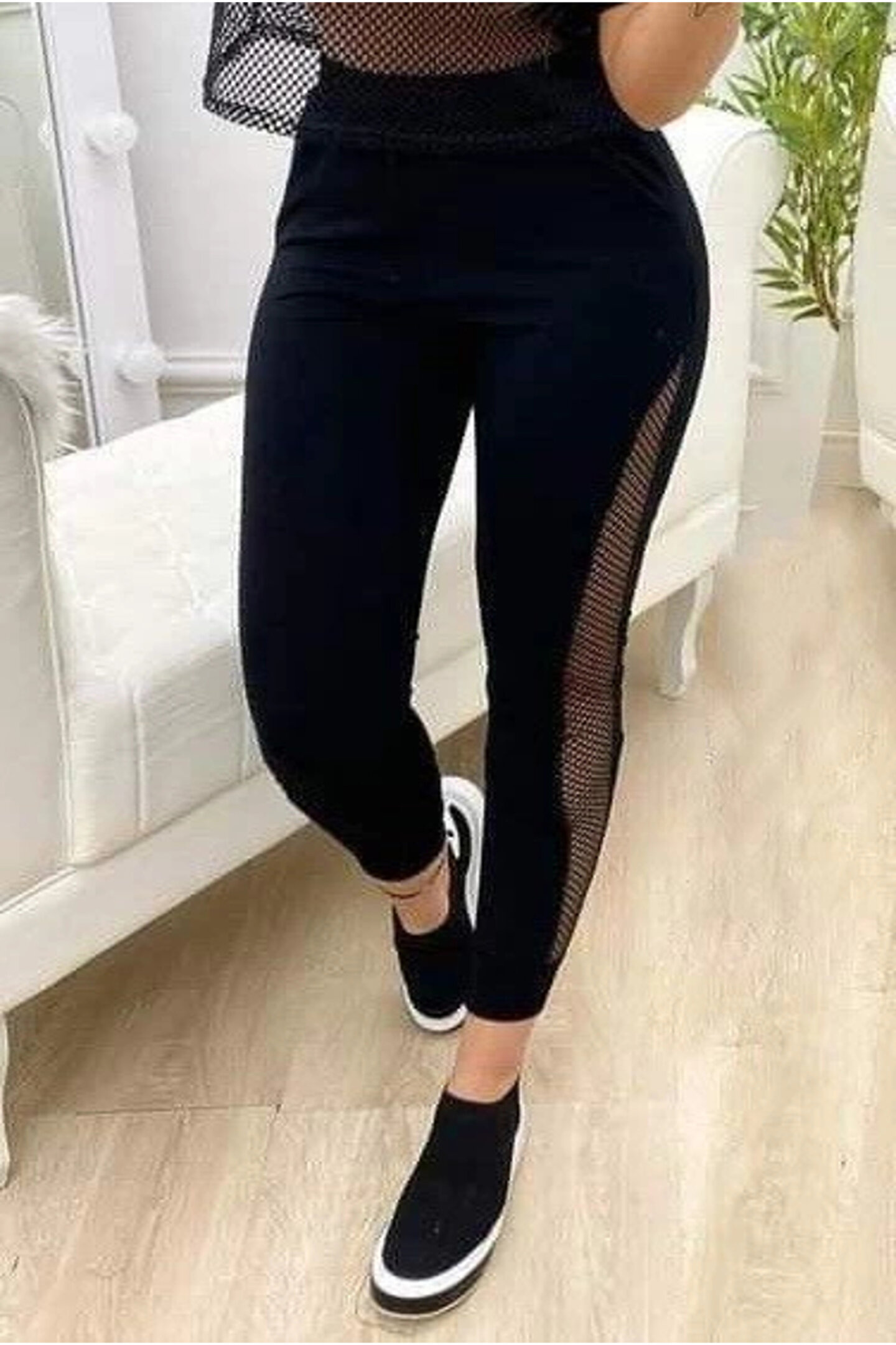 Butik Kadın Yüksek Bel File Detaylı Dar Kesim Viskon Iki Iplik Pantolon