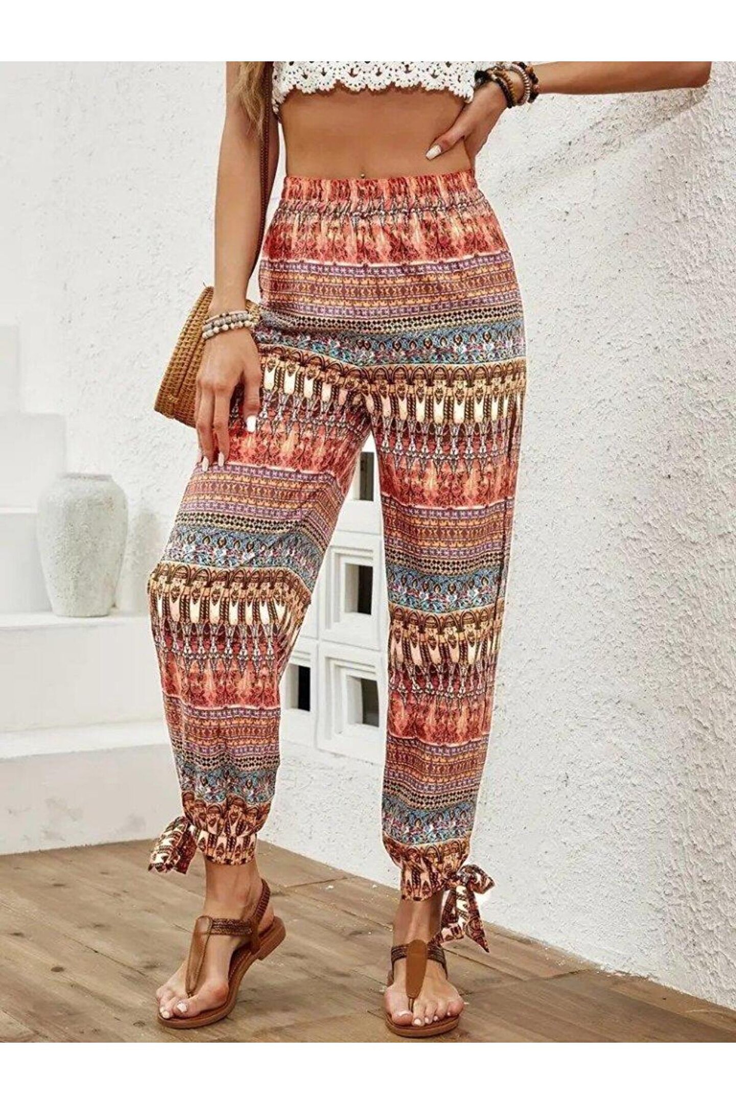 Butik Kadın Yüksek Belli Yanlardan Yırtmaç Detaylı Desenli Bürümcük Pantolon