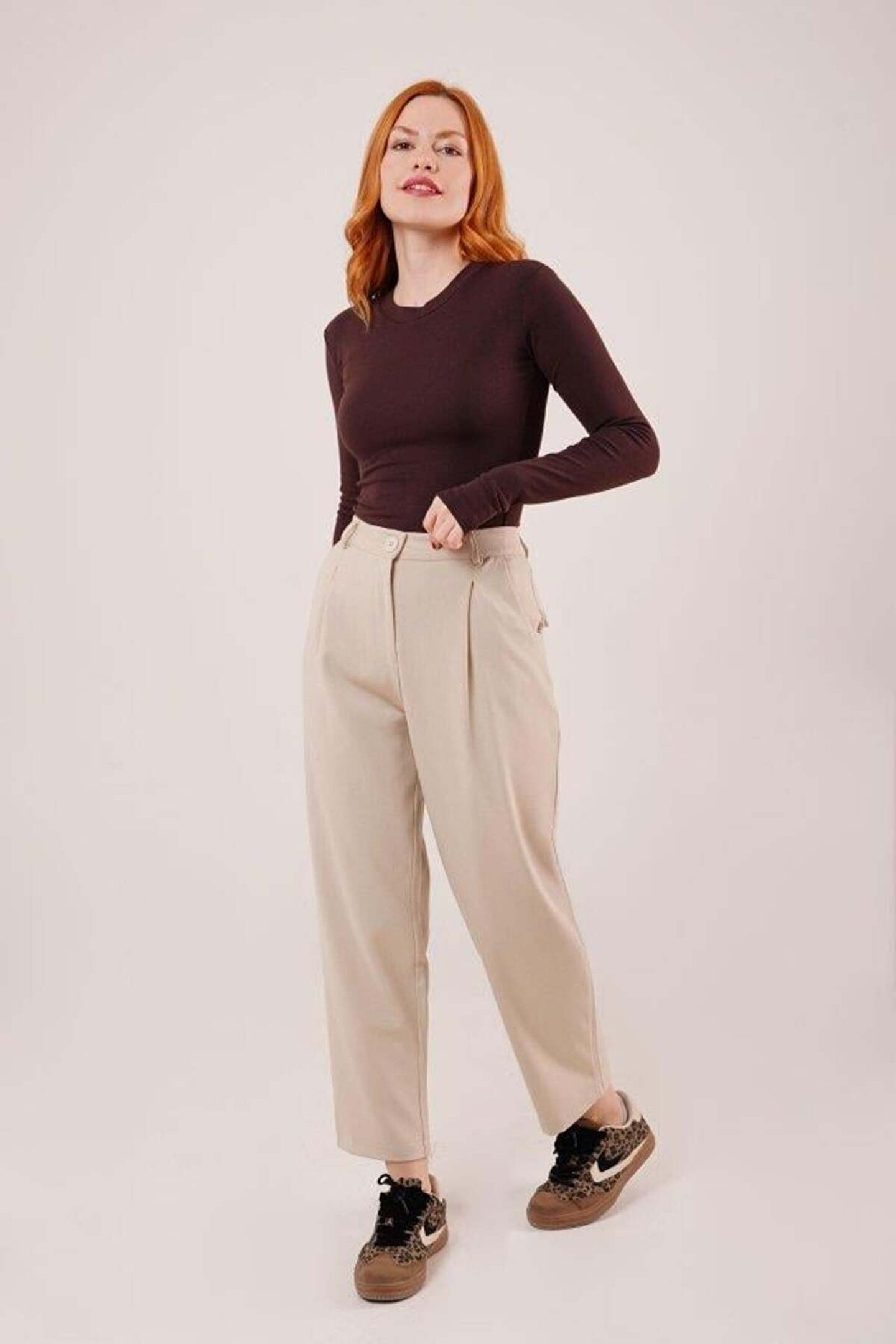 Kadın Palazzo Pantolon Oversize Orjinal Kesim - Yüksek Bel Geniş Paça Ofis ve Günlük Şık