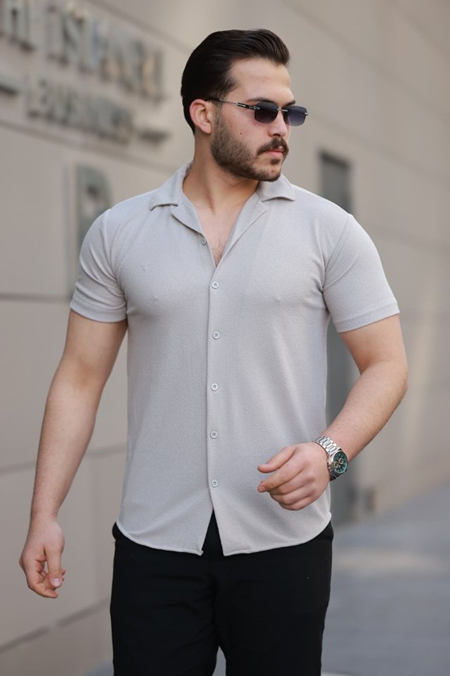 munn collection Erkek Kısa Kollu örme Kumaş Pamuklu Gömlek