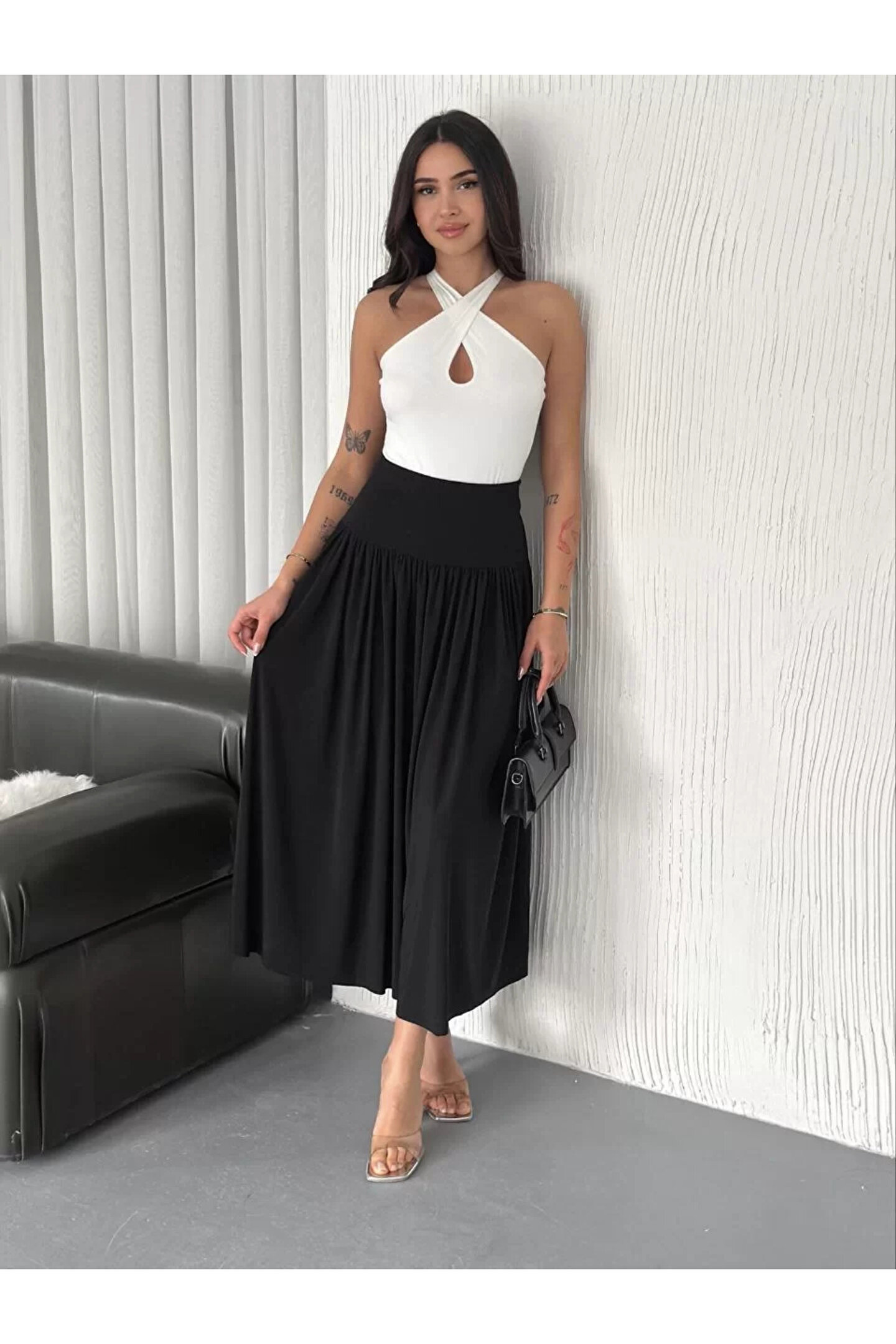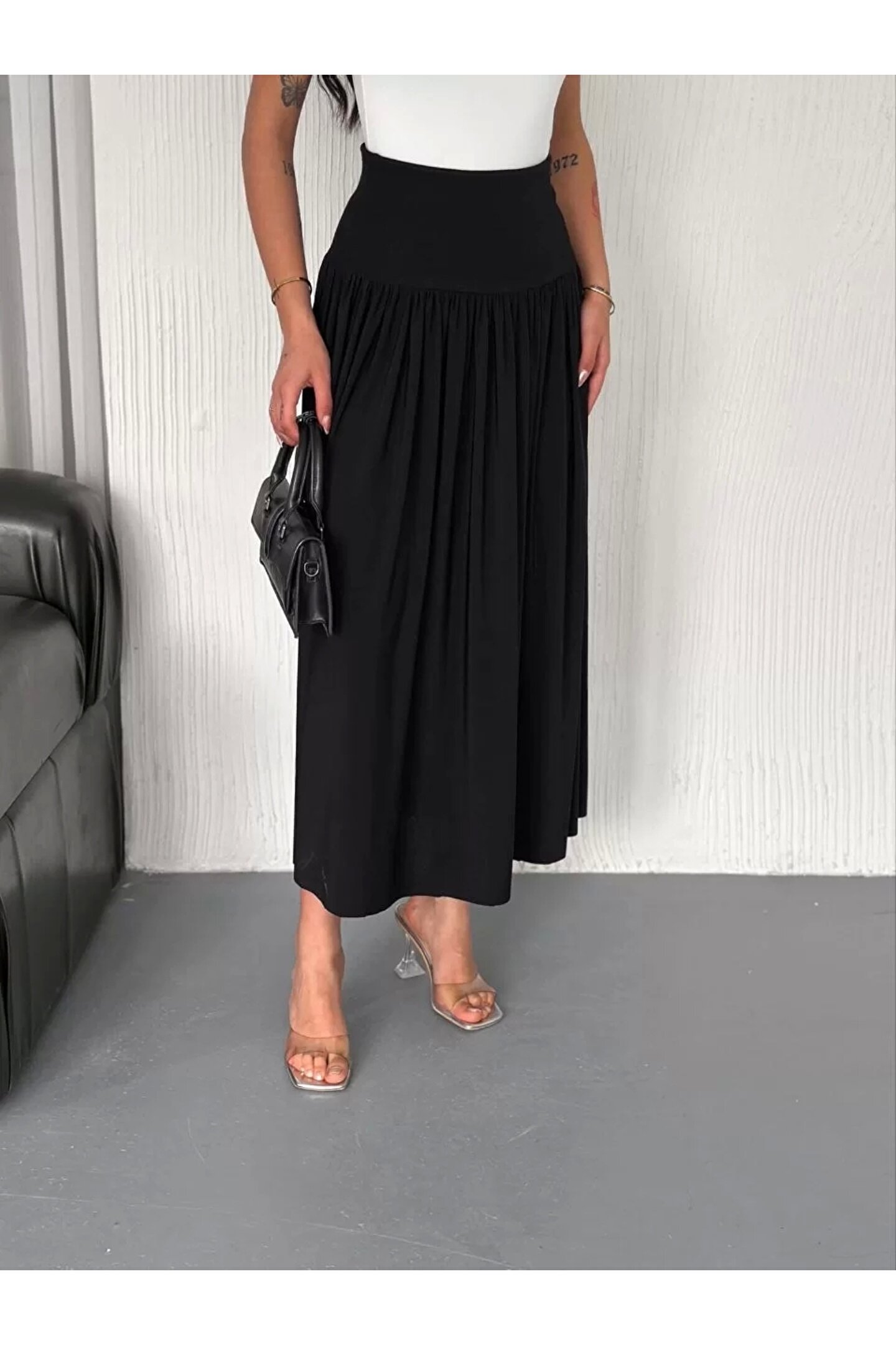 Butik Sandy Uzun Beli Lastikli Yüksel Bel Etek Yazlık - Siyah