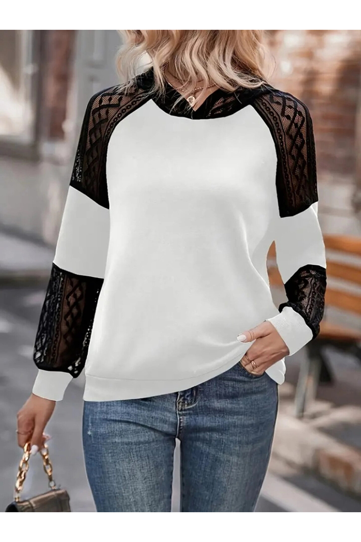 Kadın Uzun Kollu Dantelli Kapşonlu Viskon Iki Iplik Bluz