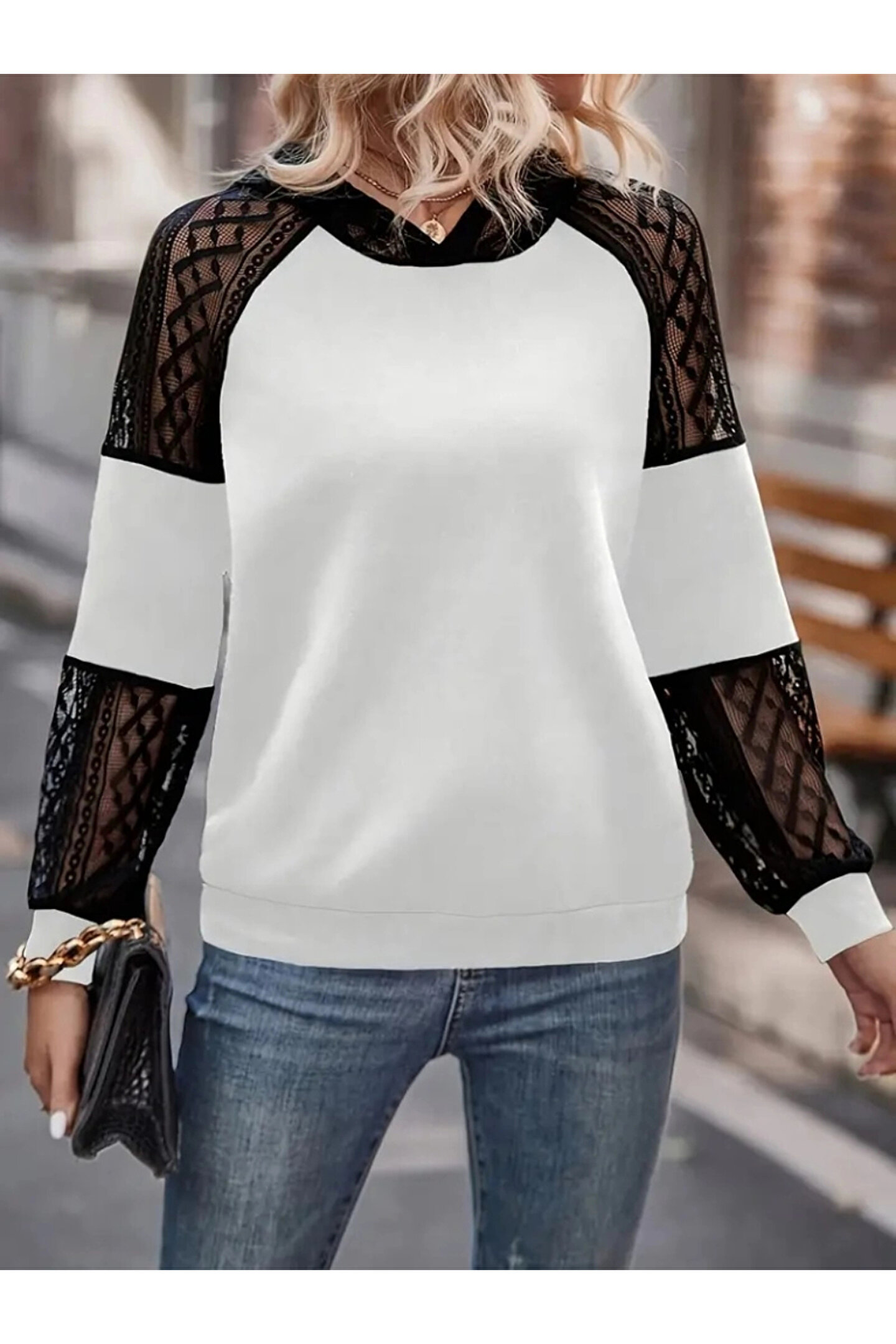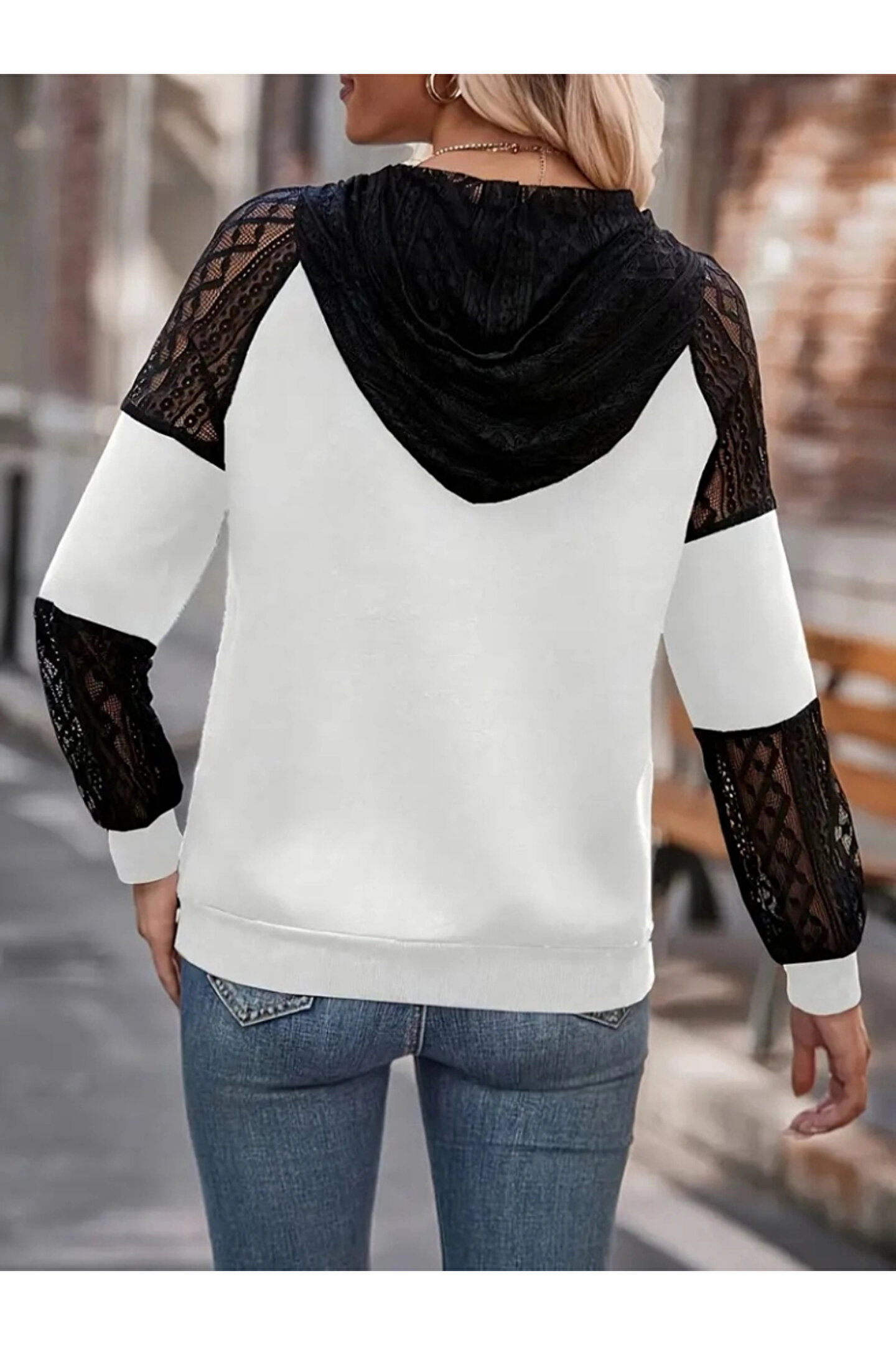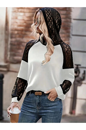 Kadın Uzun Kollu Dantelli Kapşonlu Viskon Iki Iplik Bluz