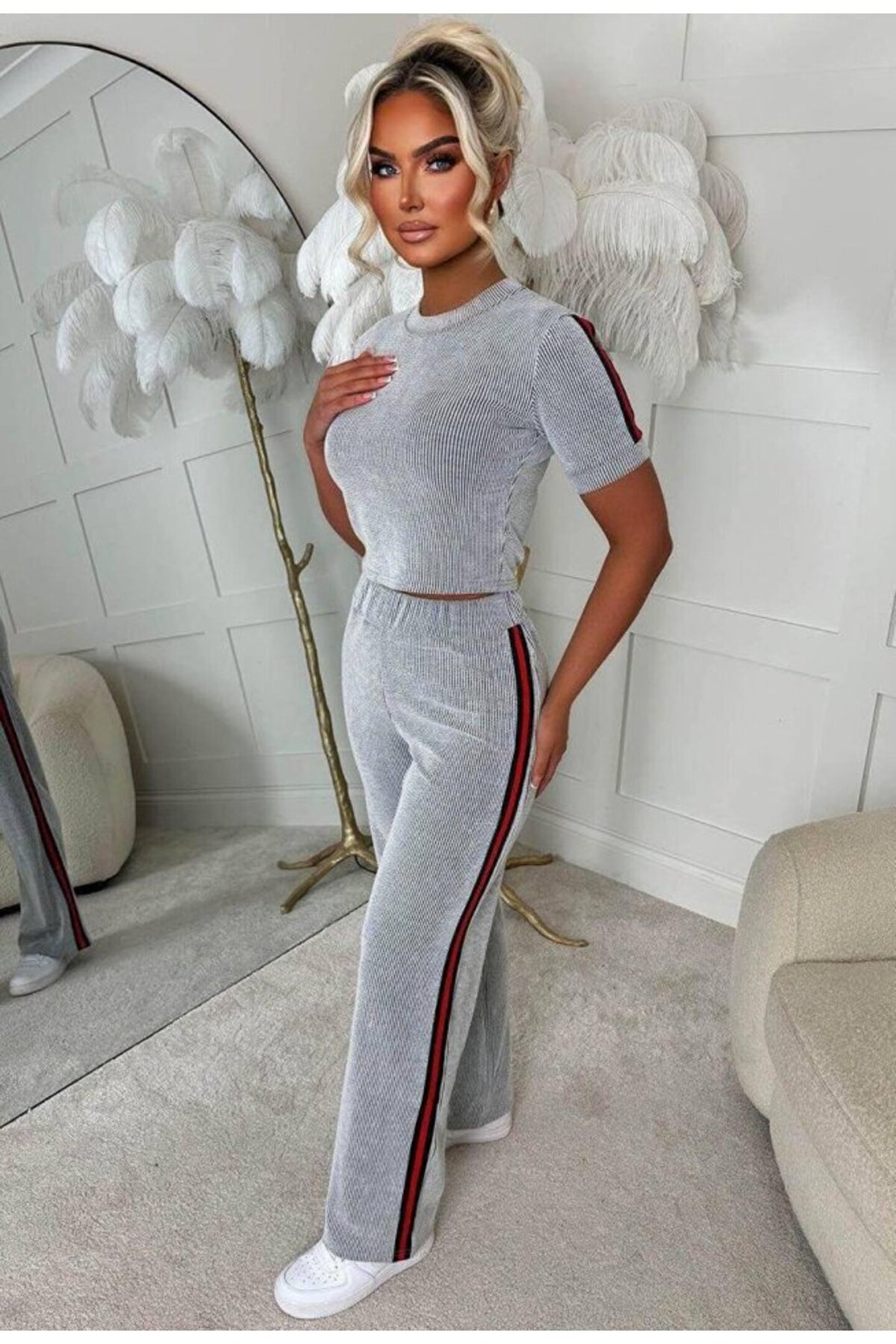 Kadın Bisiklet Yaka Yanı şerit Detay Bluz Ve Pantolon Ikili Takım