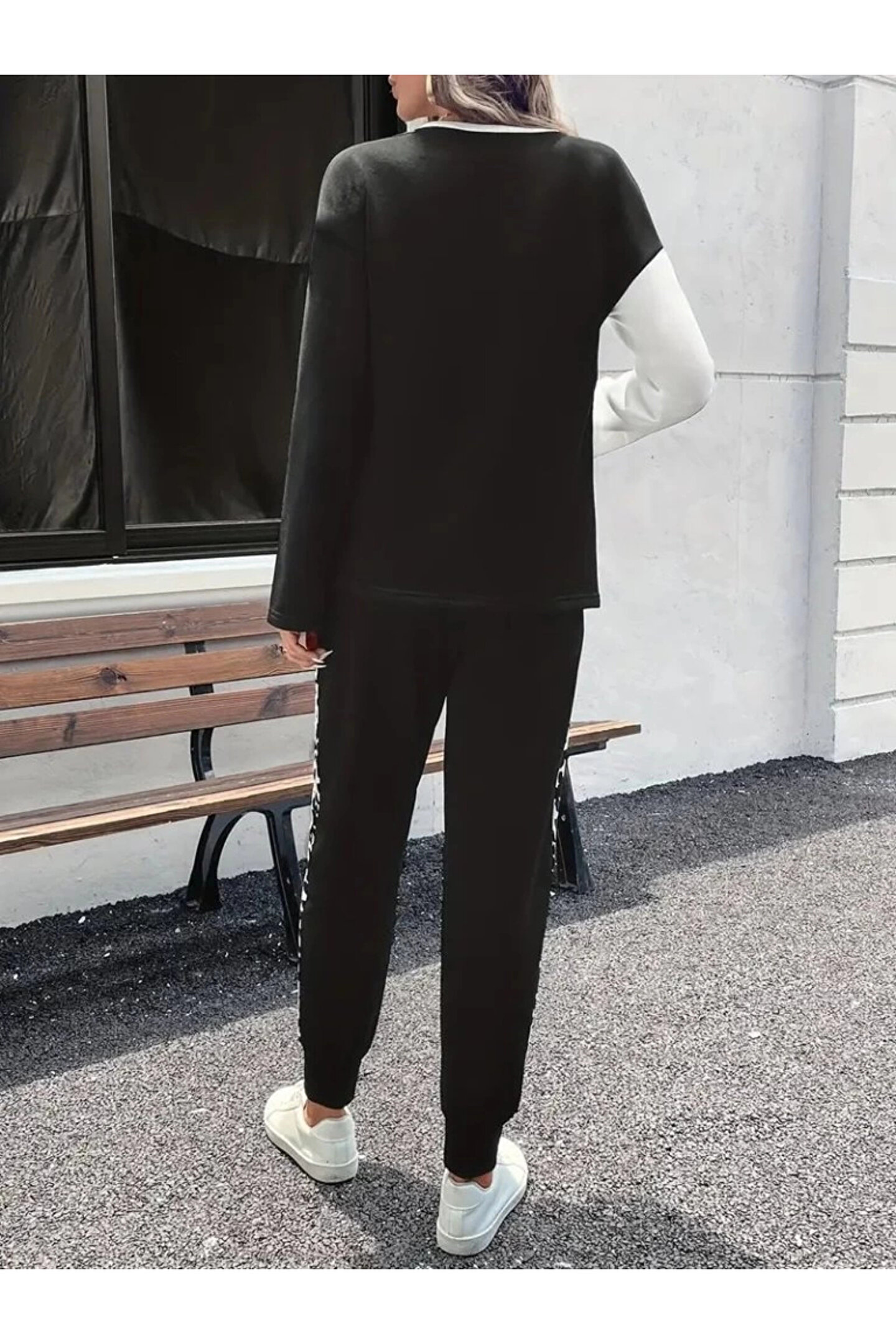 Kadın Uzun Kollu Bisiklet Yaka çift Renkli Viskon Iki Iplik Bluz Ve Pantolon Ikili Takım
