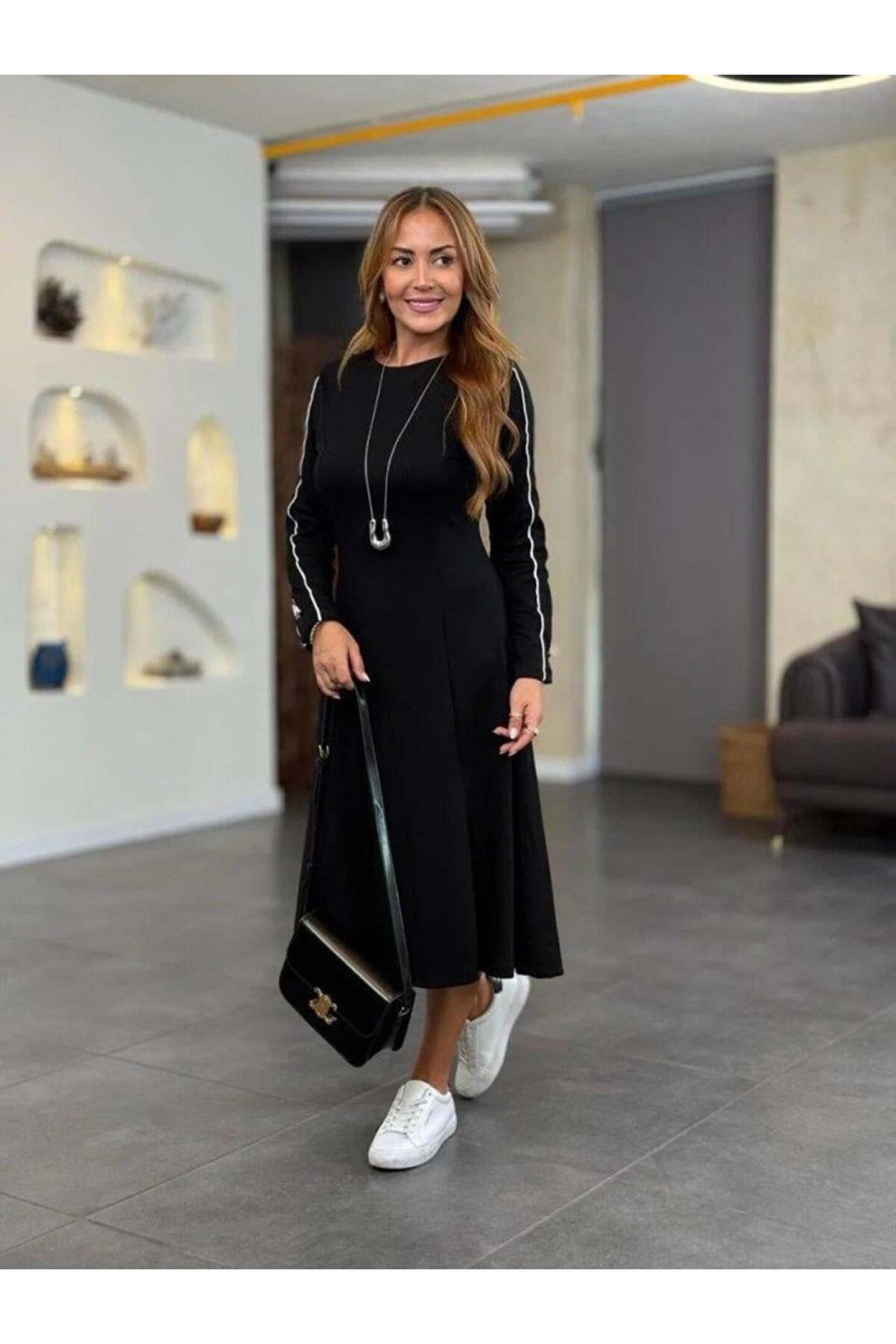 By Sevilen Collection Kadın Uzun Kollu Bisiklet Yaka Midi Modal Elbise
