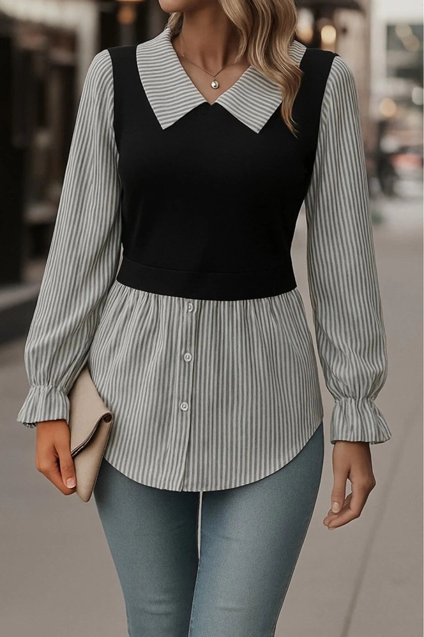 Kadın Uzun Kollu Yakalı önden Düğmeli Ottoman Bluz