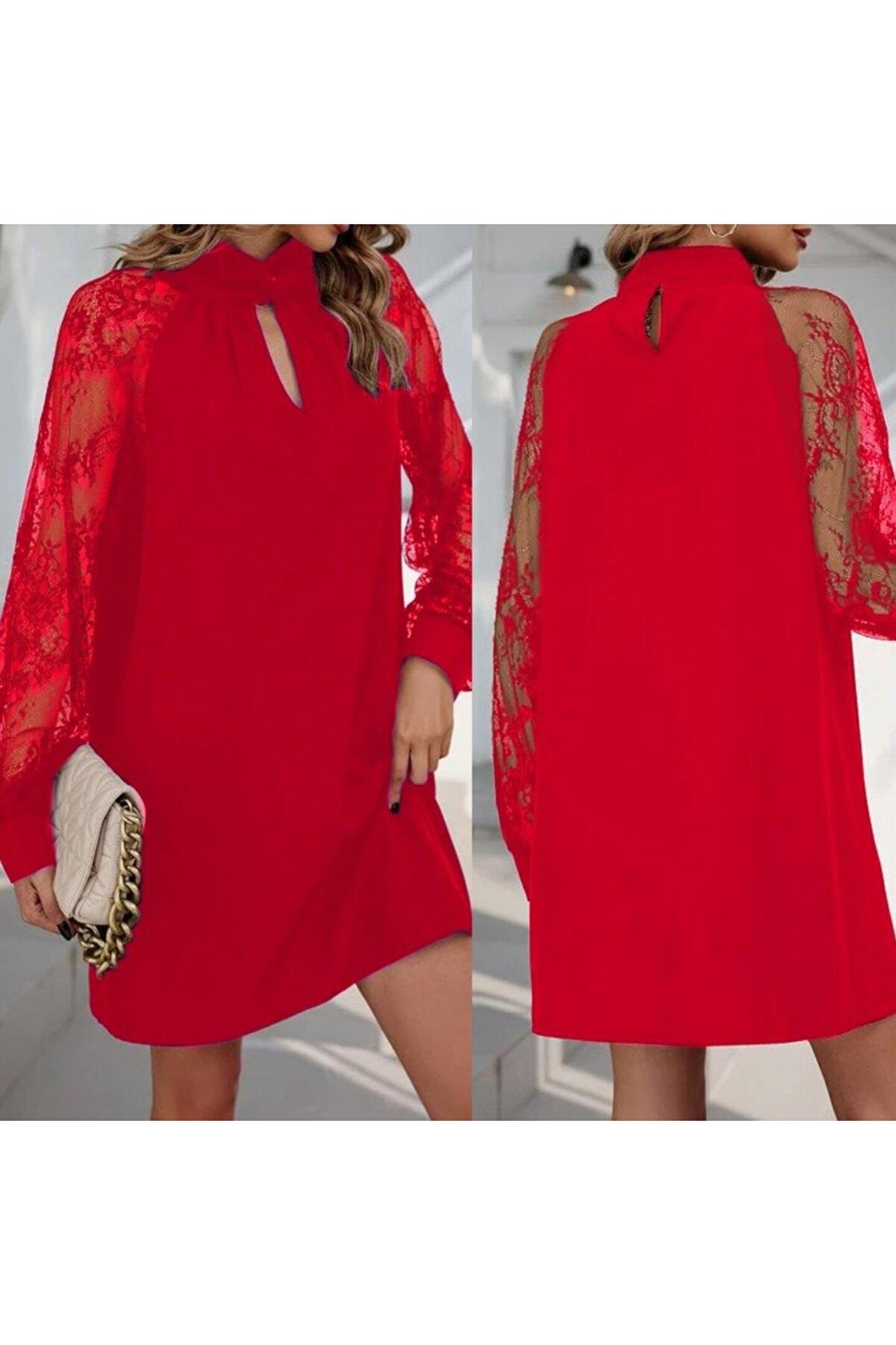 Kadın Uzun Kollu Damla Detaylı Sandy Mini Elbise