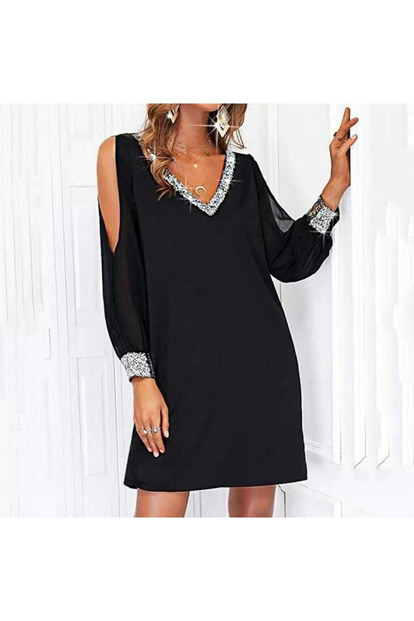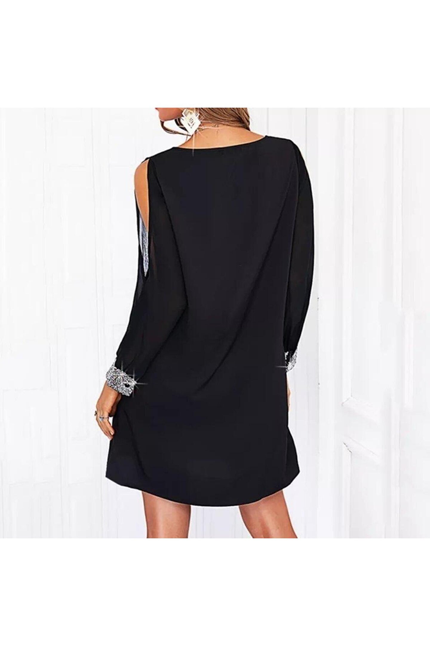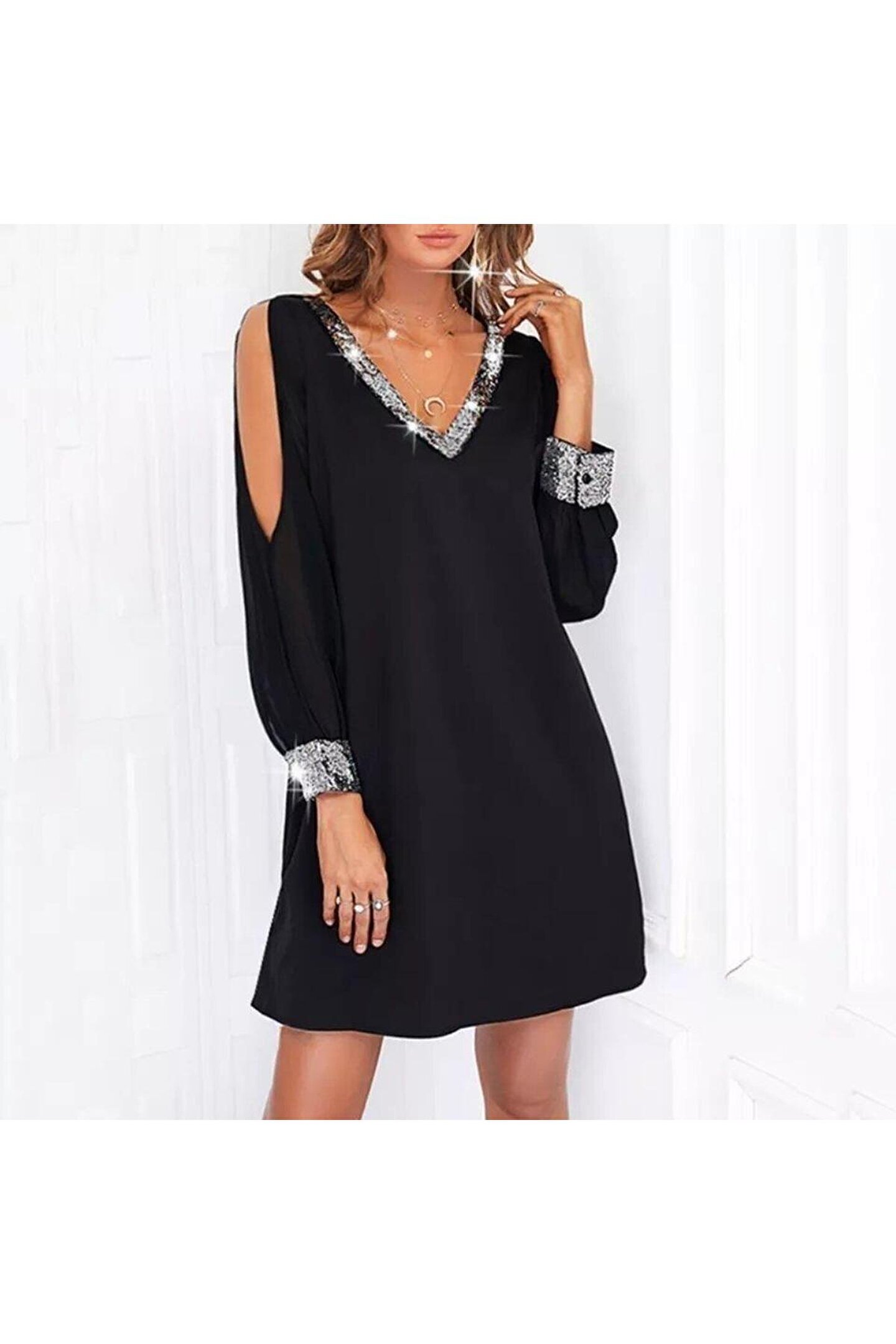 Kadın Uzun Kollu V Yaka Kollar Tül Yırtmaç Detay Kol Manşetleri Ve Yaka Payet Krep Elbise.; Ürün detayları ve kullanım hissi kişisel tercihlere göre değişiklik gösterebilir.