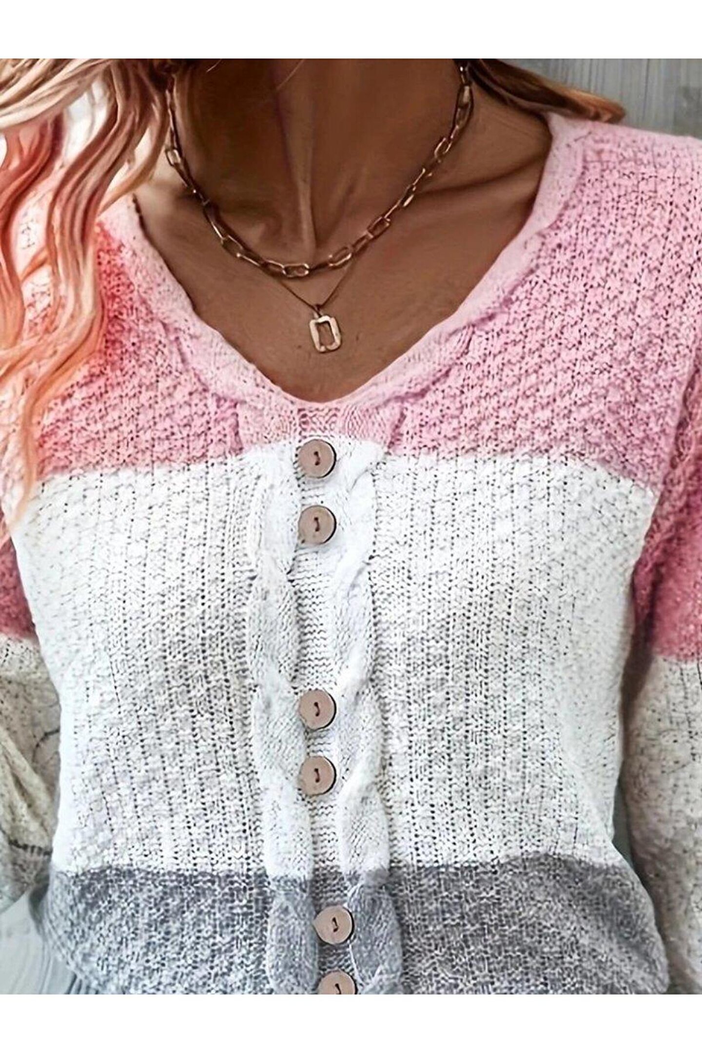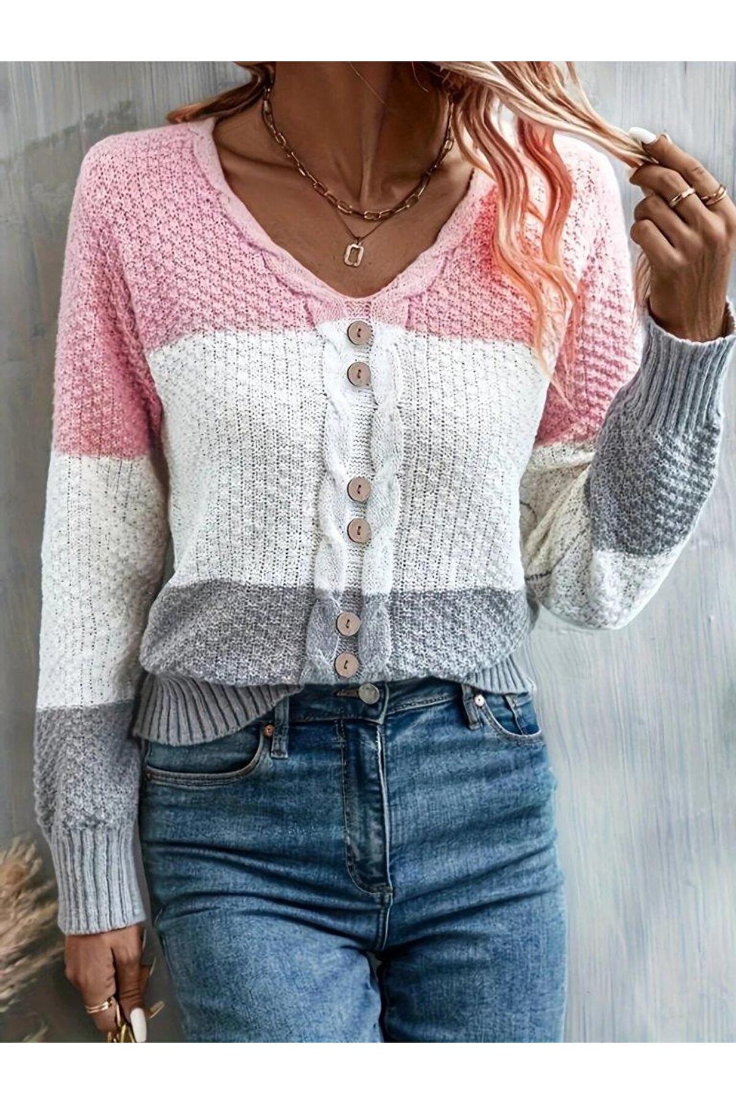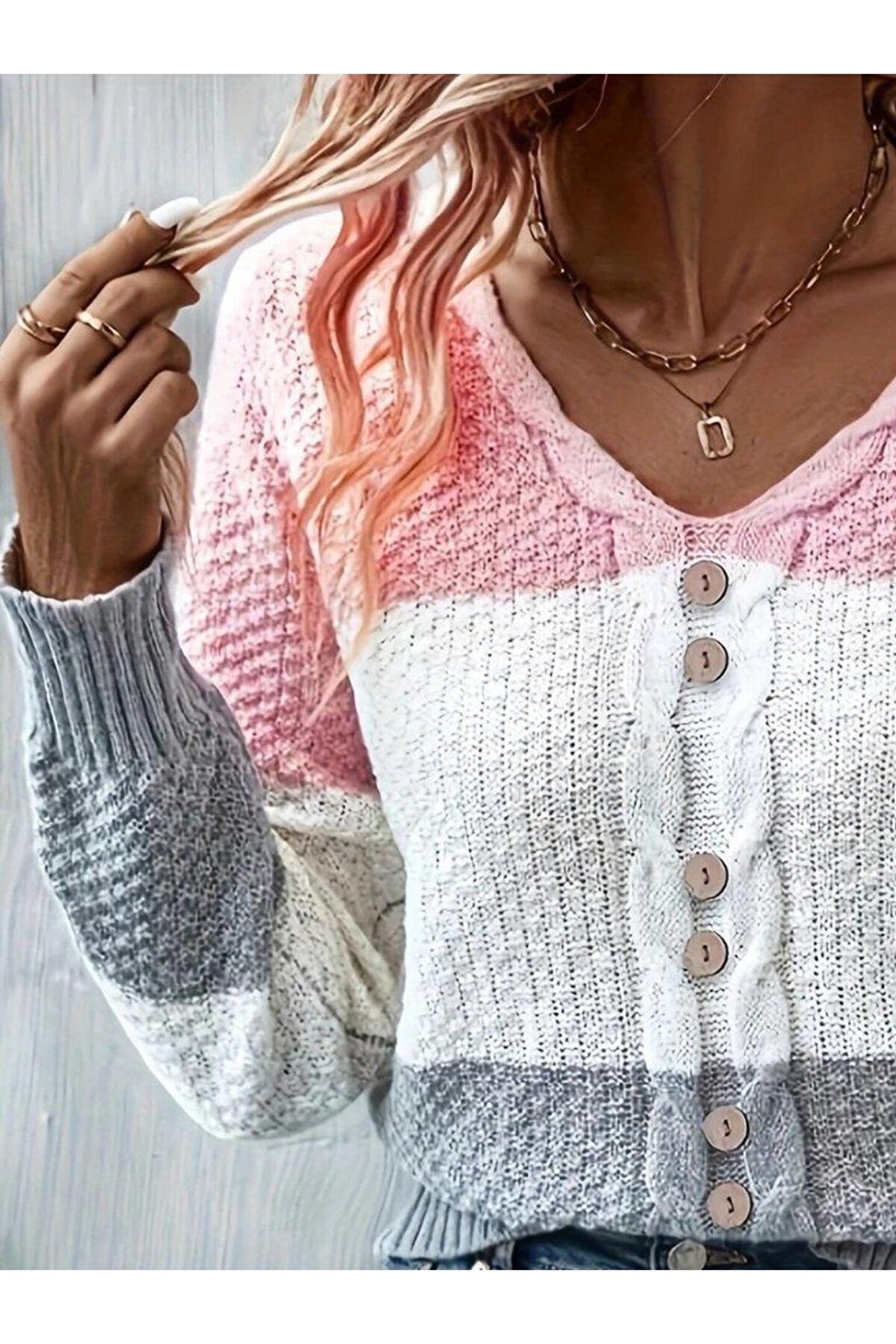 BYNPOL Kadın Uzun Kollu V Yakalı önden Düğmeli çok Renkli Bluz