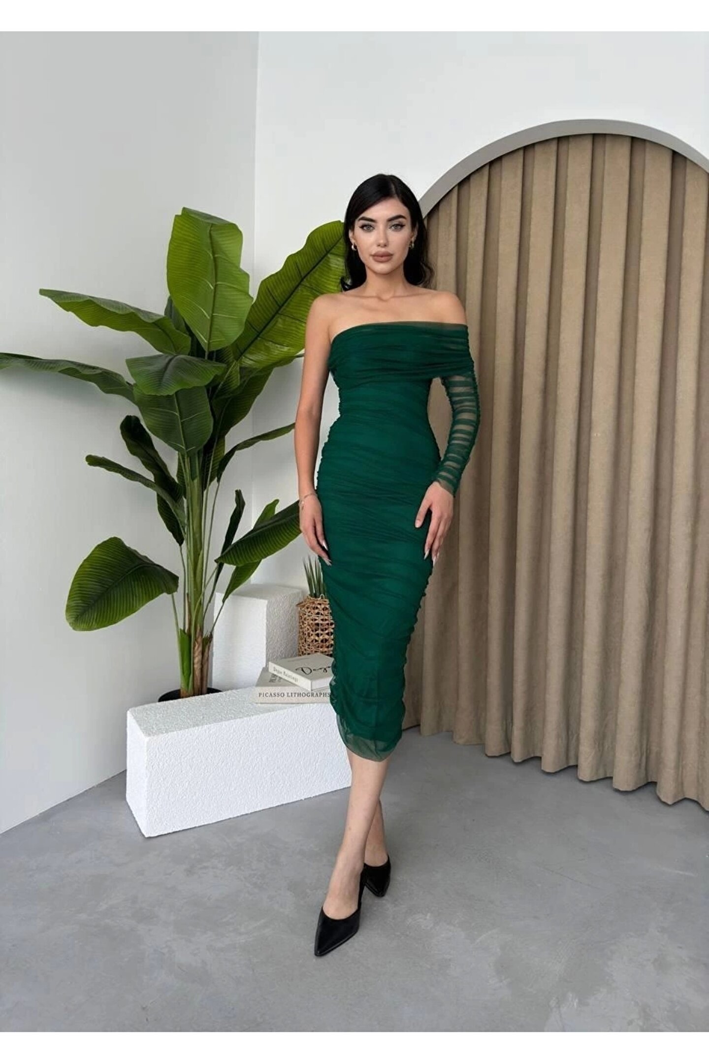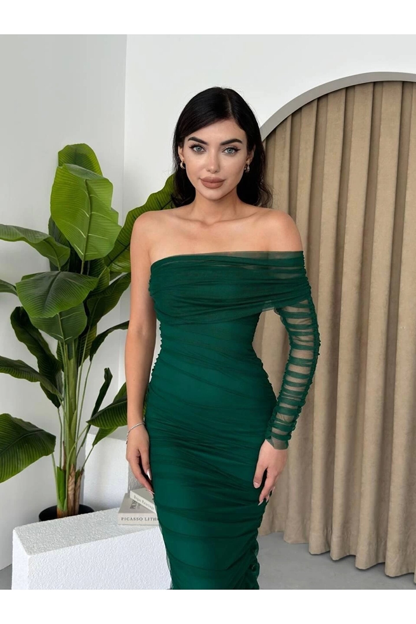Polack Tek Omuz Tül Elbise