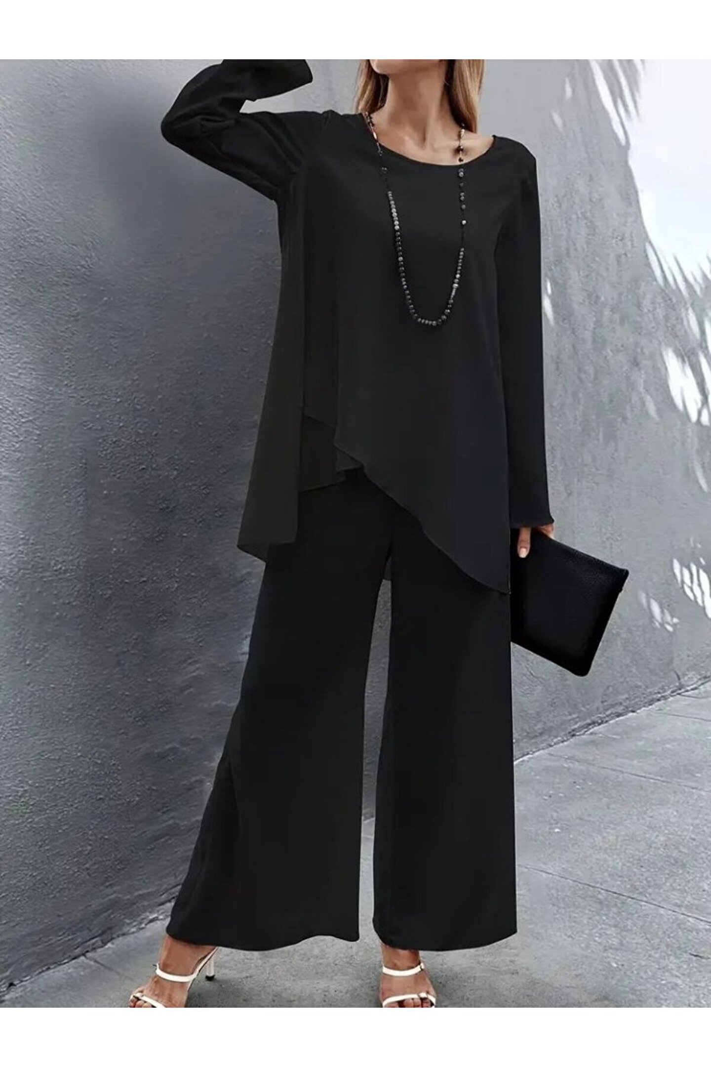 BZ Boutique EQURİ Kadın Uzun Kollu Asimetrik Detaylı Salaş Sandy Bluz Ve Pantolon Ikili Takım